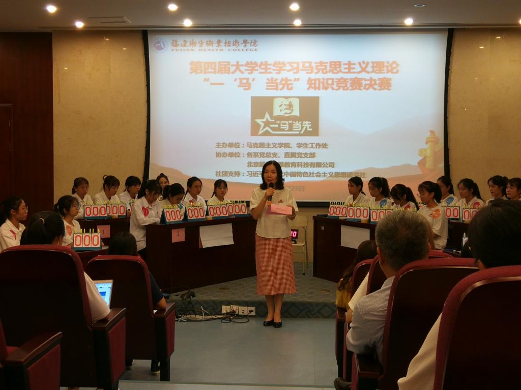 為深入學習習近平新時代中國特色社會主義思想,持續(xù)開展習近平總書記關于黨史、新中國史、改革開放史、社會主義發(fā)展史學習以及新冠肺炎疫情防控工作的重要講話和指示精神,大力弘揚新時代愛國主義精神,引導新時代大學生把握世情、國情、省情,提高運用馬克思主義理論觀察問題、分析問題和解決問題的能力,9月23日晚,我院第四屆大學生學習馬克思主義理論“一‘馬’當先”知識競賽決賽,在實訓樓四樓多媒體報告廳成功舉行。校黨委副書記李美華、副校長陳貞健,宣傳部、學生工作處、馬院負責人,各系黨總支書記、副書記,全體思政課教師和輔導員代表出席了本次活動。