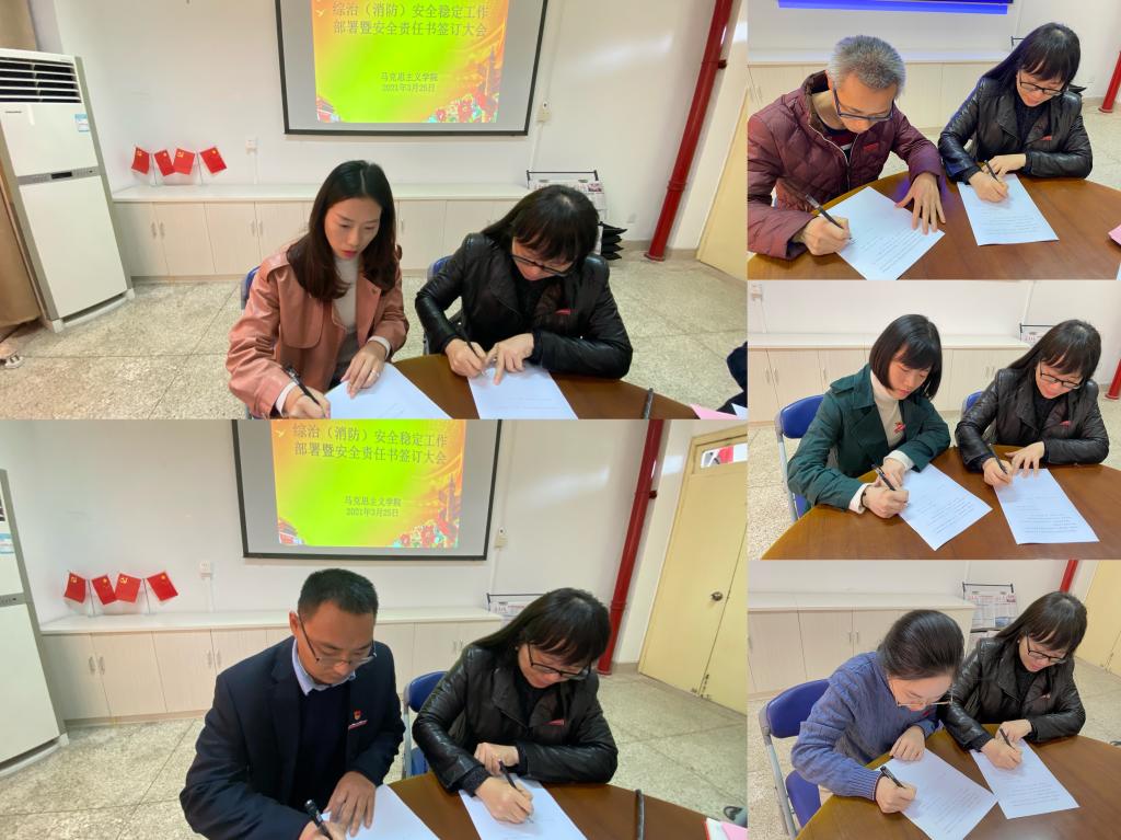 為貫徹落實學(xué)校關(guān)于(綜治)消防安全穩(wěn)定工作精神,進(jìn)一步加強(qiáng)校園安全防范工作,切實保障全體師生的安全和校園穩(wěn)定和諧。2021年3月25日上午,馬克思主義學(xué)院在會議室107召開(綜治)消防安全穩(wěn)定工作部署暨安全責(zé)任書簽訂大會。會議由馬克思主義學(xué)院院長熊美蘭主持,馬克思主義學(xué)院全體教師參加此次會議。