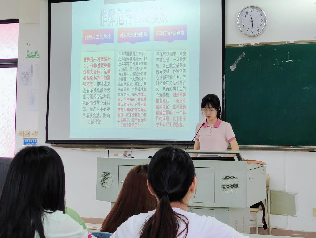 為了全面貫徹落實(shí)馬克思主義勞動教育觀,端正學(xué)生學(xué)習(xí)態(tài)度,增強(qiáng)學(xué)生誠信意識,誠信應(yīng)考,杜絕作弊現(xiàn)象的發(fā)生,2022年6月10日,馬克思主義學(xué)院教師胡濟(jì)林指導(dǎo)21康復(fù)301班全體同學(xué)在教學(xué)樓209開展誠信應(yīng)考主題班會。