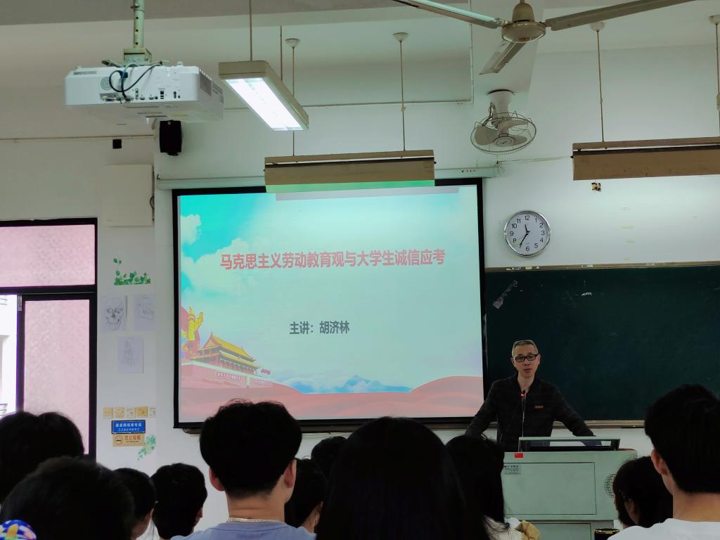 最后,胡濟(jì)林作《馬克思主義勞動教育觀與大學(xué)生誠信應(yīng)考》的專題報(bào)告,胡濟(jì)林在闡釋馬克思主義勞動教育觀的基本知識后,指出大學(xué)生應(yīng)該養(yǎng)成良好日常生活勞動習(xí)慣,尊重他人的勞動成果,要掌握勞動技能,強(qiáng)化服務(wù)性勞動,發(fā)揮專業(yè)特長,為群眾提供專業(yè)服務(wù)。并強(qiáng)調(diào)對于即將到來的考試,大家要積極備考,誠信應(yīng)考,爭取在期末考試中取得優(yōu)異的成績。胡濟(jì)林的講話進(jìn)一步增強(qiáng)了同學(xué)們的勞動觀念,對樹立崇尚勞動、誠實(shí)勞動、誠信應(yīng)考、杜絕舞弊的思想起到積極的作用。