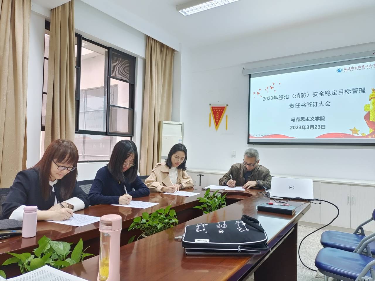 為貫徹落實學(xué)校關(guān)于綜治(消防)安全穩(wěn)定工作精神,進一步強化校園安全穩(wěn)定管理,提升學(xué)校安全穩(wěn)定工作水平,切實維護學(xué)校安全穩(wěn)定。2023年3月23日,馬克思主義學(xué)院在行政樓107會議室舉行2023年綜治(消防)安全穩(wěn)定目標管理責(zé)任書簽訂大會。