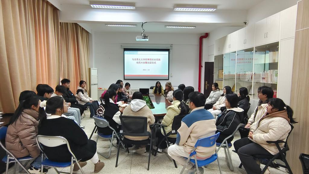 為確?;顒禹樌?、有效開展,2024年1月24日,實踐隊召開行前動員大會。馬克思主義學院院長熊美蘭,顏冰鳳、江洪、龍慧等指導老師及全體隊員參加了此次大會。熊美蘭作動員講話,強調開展此次活動的重要意義。會議還強調了此次實踐活動的主題、內容、任務分組、紀律要求、注意事項等,深化實踐隊對此次實踐活動的認識,提高了隊員們參與活動的熱情和積極性。