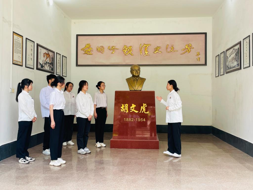 僑情深幾許,僑領(lǐng)顯風范。實踐隊一行追尋僑領(lǐng)的足跡,來到了胡甫開先生在中共閩西南潮梅特委和廣大僑胞的支持下發(fā)起創(chuàng)辦的僑育中學開展調(diào)研。1940年春,國民黨當局覺察僑育中學有地下黨在活動,便借僑育中學沒有“立案”為由,欲強行封閉僑育中學,扼殺“革命搖籃”于萌芽之初,在這“山雨欲來風滿樓”的嚴峻時刻,首任董事長胡文虎先生聞訊,當即致電當時的教育廳廳長以示抗議,頂逆風、挽狂瀾,才使得新生的革命學校免除滅頂之災。在學校會議室、校史館、校園小道,實踐隊師生與僑育中學副校長唐建滾和教研室主任胡勝仁深入交流,領(lǐng)略著這里濃濃的“僑味”和“紅味”,共同探討新時代僑鄉(xiāng)教育事業(yè)的發(fā)展。