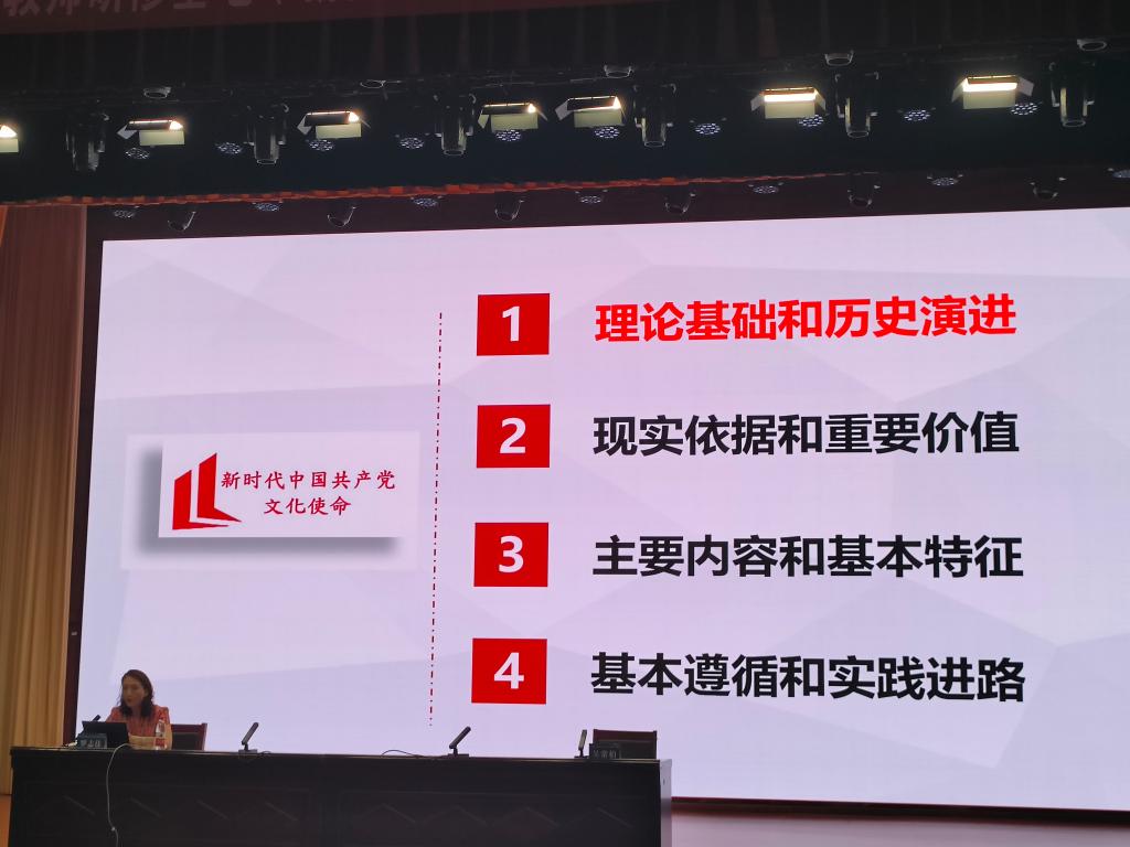 “文化認(rèn)同是最深層次的認(rèn)同,是民族團(tuán)結(jié)之根、民族和睦之魂?!痹谛陆蟮厣希腥A文化數(shù)千年延續(xù),化在悠悠古絲綢之路上精魂永存的烽燧戍堡之中,留在飽經(jīng)風(fēng)霜卻歷久彌新的古城之間,滲入生活在新疆土地上各民族的思想言行之中。開(kāi)班第一課上,新疆師范大學(xué)馬克思主義學(xué)院副院長(zhǎng)羅志佳教授以“新時(shí)代中國(guó)共產(chǎn)黨文化使命”為題,通過(guò)講述新疆紅色故事、朗誦新疆革命詩(shī)歌、演唱新疆經(jīng)典民歌等多種方式,向參訓(xùn)教師生動(dòng)闡釋了新時(shí)代中國(guó)共產(chǎn)黨文化使命的“理論基礎(chǔ)和歷史演進(jìn)”“現(xiàn)實(shí)依據(jù)和重要價(jià)值”“主要內(nèi)容和基本特征”“基本遵循和實(shí)踐路徑”四個(gè)方面內(nèi)容。羅志佳教授將新疆各民族風(fēng)土人情和文化底蘊(yùn)有機(jī)融入中華文化的發(fā)展脈絡(luò)之中,于“文化潤(rùn)疆”中,讓參訓(xùn)教師深刻感悟到各民族廣泛交往交流交融、團(tuán)結(jié)奮進(jìn)的新疆實(shí)踐,積累了宣傳中華民族共同體意識(shí)的生動(dòng)素材。