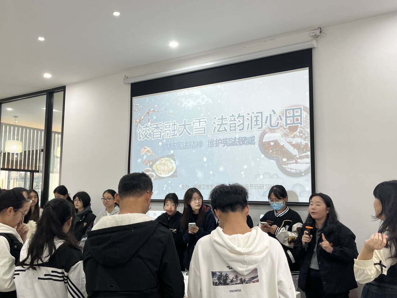 為推動中華優(yōu)秀傳統(tǒng)文化與法治理念深度融合的創(chuàng)新實踐,12月5日,由馬克思主義學院教師指導的傳統(tǒng)節(jié)日研習社,以大雪節(jié)氣與憲法宣傳周為契機,在“一站式”學生社區(qū)舉辦“餃香融大雪,法韻潤心田”主題活動。校黨委書記曾武祈到場指導,社團指導教師、馬克思主義學院第一黨支部全體黨員以及學生社團代表參加活動。