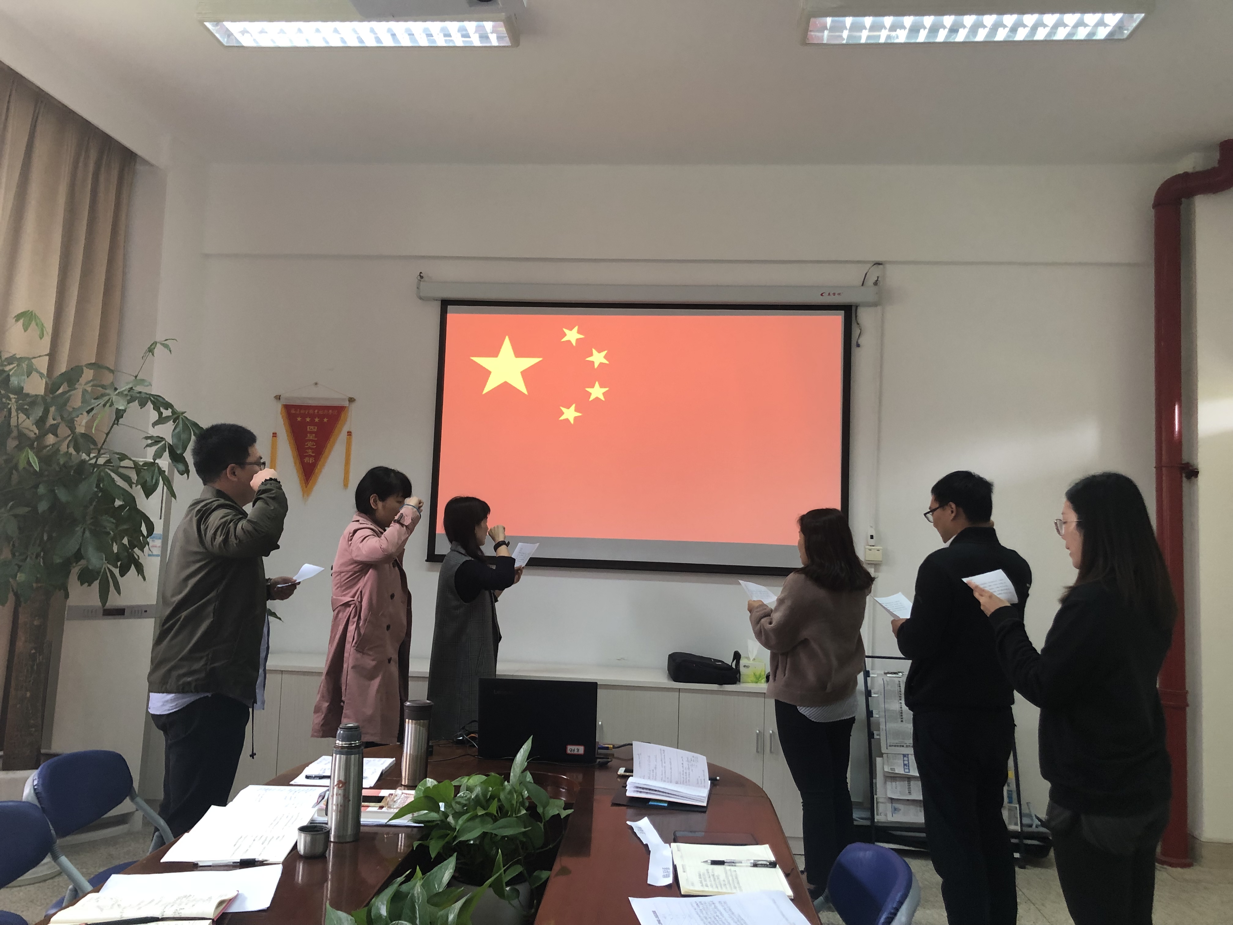 首先,馬克思主義學(xué)院院長(zhǎng)熊美蘭對(duì)新進(jìn)的5位教師表示熱烈的歡迎。熊美蘭就教師職業(yè)選擇,思政課教師的使命擔(dān)當(dāng)以及學(xué)院、學(xué)校當(dāng)前的整體發(fā)展現(xiàn)狀與新進(jìn)教師們做了一個(gè)分享。接著,馬克思主義學(xué)院辦公室主任楊盈老師帶領(lǐng)新教師舉起右手向國(guó)旗莊嚴(yán)宣誓。宣誓儀式結(jié)束后,熊美蘭就2018-2019學(xué)年新教師導(dǎo)師做了一個(gè)安排,每位新進(jìn)老師與自己的導(dǎo)師就相關(guān)的課程教學(xué)設(shè)計(jì)和教學(xué)內(nèi)容進(jìn)行了探討。熊美蘭強(qiáng)調(diào),新教師入職宣誓儀式是引導(dǎo)廣大教師樹立立德樹人、依法執(zhí)教的理念,堅(jiān)定職業(yè)信念和職業(yè)操守,深刻理解教師職業(yè)責(zé)任和義務(wù),增強(qiáng)職業(yè)責(zé)任感和榮譽(yù)感。