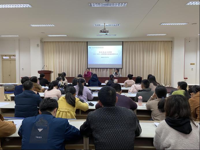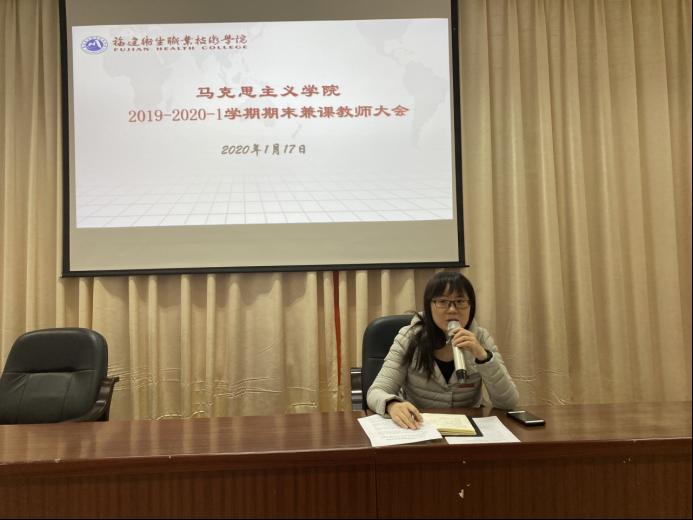 為全面提升教師教學(xué)質(zhì)量,深入貫徹落實(shí)學(xué)校思想政治理論課教師座談會(huì)、全國(guó)教育大會(huì)、全國(guó)高校思想政治工作會(huì)議精神,貫徹落實(shí)中共中央辦公廳、國(guó)務(wù)院辦公廳《關(guān)于深化新時(shí)代學(xué)校思想政治理論課改革創(chuàng)新的若干意見(jiàn)》,辦好新時(shí)代高職高專(zhuān)思想政治理論課,用習(xí)近平新時(shí)代中國(guó)特色社會(huì)主義思想鑄魂育人,發(fā)揮好思政課在高職高專(zhuān)院校立德樹(shù)人根本任務(wù)的關(guān)鍵課程作用,抓好思政課教師隊(duì)伍建設(shè),馬克思主義學(xué)院(以下簡(jiǎn)稱(chēng)“馬院”)于2020年1月17日在行政樓六樓會(huì)議室召開(kāi)馬院2019-2020-1學(xué)期期末兼課教師大會(huì),全體兼課教師參與本次會(huì)議,馬院院長(zhǎng)熊美蘭主持。