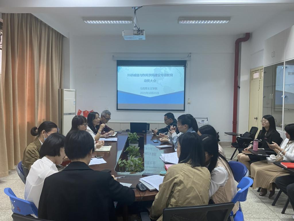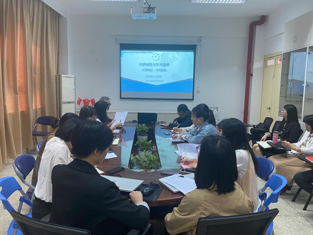為進一步弘揚求真務(wù)實、嚴謹自律的學術(shù)精神,加強科研誠信建設(shè)、嚴明學術(shù)紀律、規(guī)范學術(shù)行為,營造鼓勵創(chuàng)新、風清氣正的學術(shù)環(huán)境,建立學術(shù)不端自查自糾工作長效機制,2021年10月21日上午,馬克思主義學院在行政樓107會議室開展“科研誠信與學術(shù)道德”專題學習活動,本次活動由馬克思主義學院院長熊美蘭主持,馬克思主義學院全體教師出席活動。