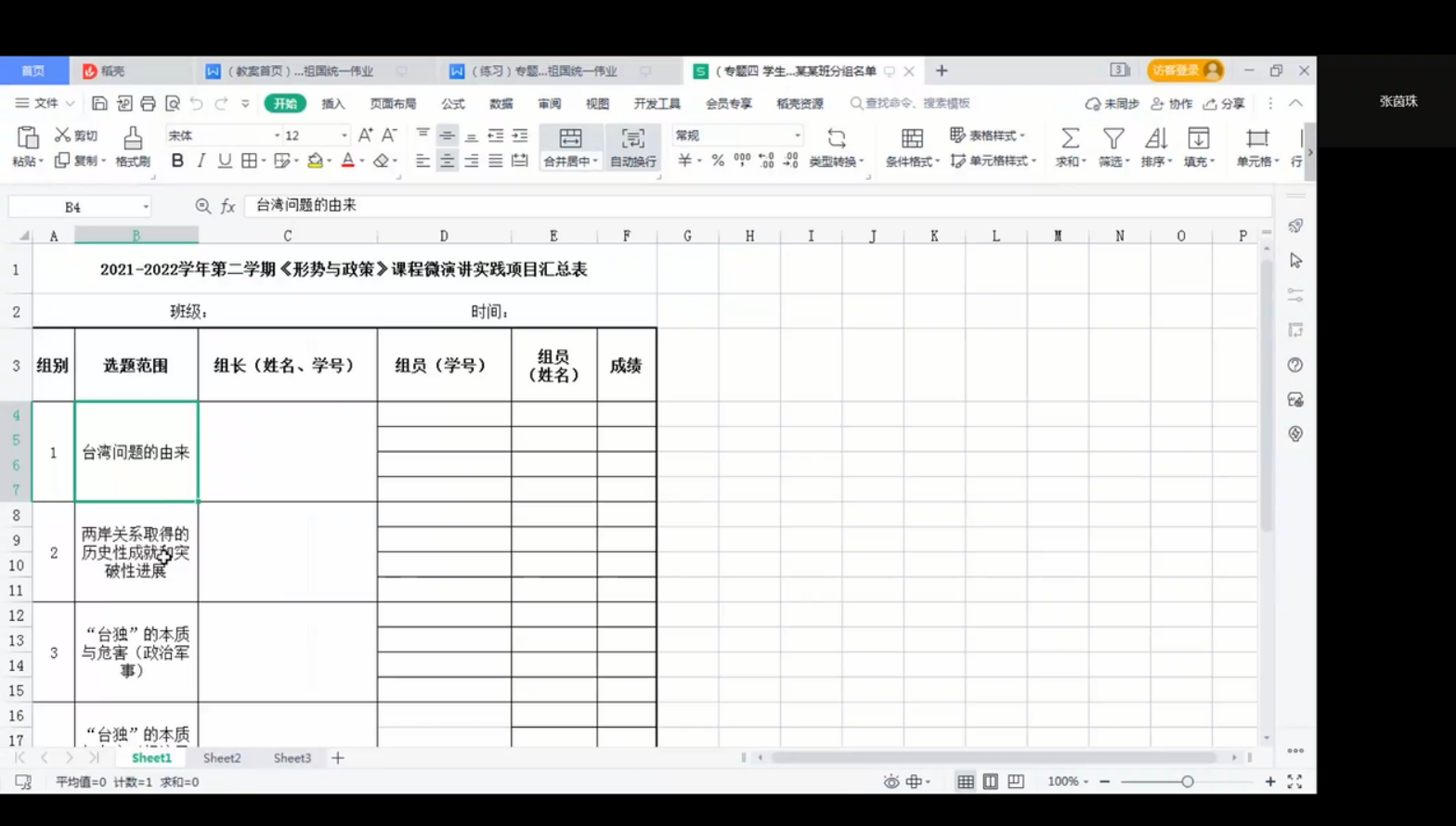 張茵珠圍繞《站在歷史正確一邊共創(chuàng)祖國(guó)統(tǒng)一偉業(yè)》這一學(xué)生主講專題,立足教學(xué)目的和學(xué)生實(shí)際,提供了“臺(tái)灣問(wèn)題的由來(lái)”“兩岸關(guān)系取得的歷史性成就和突破性進(jìn)展”“臺(tái)獨(dú)的本質(zhì)與危害”等七個(gè)選題。
