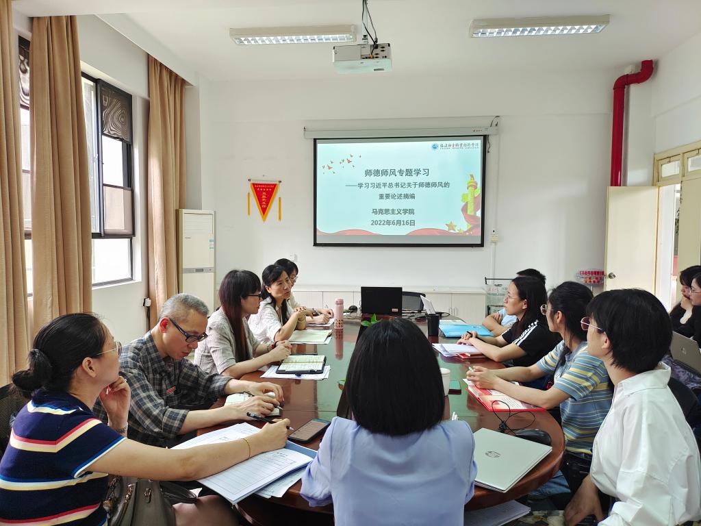 為深入學(xué)習(xí)貫徹習(xí)近平總書記關(guān)于教育的重要論述和全國職業(yè)教育大會精神,加強和改進新時代師德師風建設(shè),2022年6月16日馬克思主義學(xué)院開展師德師風專題學(xué)習(xí)。