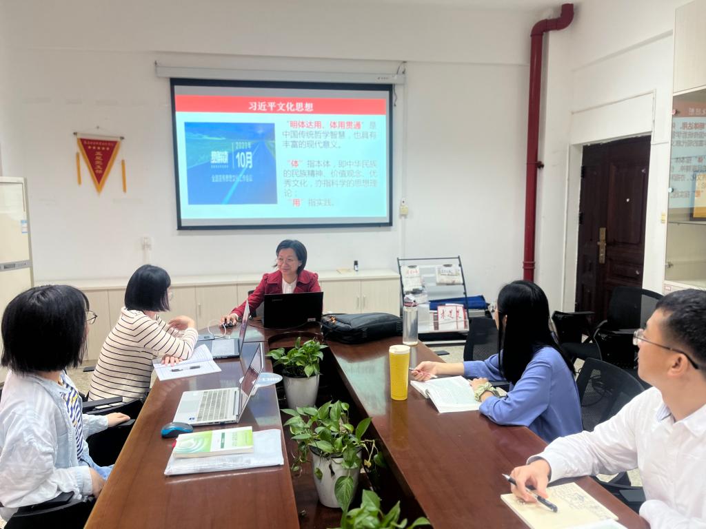 會上,教師們共同學(xué)習(xí)了習(xí)近平總書記在新時代文化建設(shè)方面的新思想新觀點新論斷。“思想道德與法治”教研室主任顏冰鳳指出,習(xí)近平文化思想是一個不斷展開的開放式思想體系,老師們要不斷加深對習(xí)近平文化思想的學(xué)習(xí)、研究、闡釋,并自覺貫徹落實到教學(xué)工作之中,傳播當(dāng)代中國價值觀念、反映全人類共同價值,為展現(xiàn)生動立體的中國形象,推動構(gòu)建人類命運共同體譜寫新篇章。