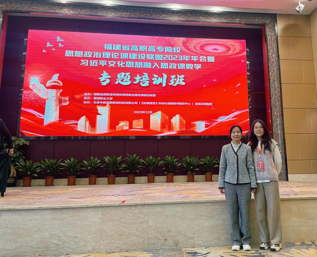 為深入開(kāi)展學(xué)習(xí)貫徹習(xí)近平新時(shí)代中國(guó)特色社會(huì)主義思想主題教育,貫徹落實(shí)習(xí)近平總書(shū)記在中央政治局第五次集體學(xué)習(xí)時(shí)的重要講話精神,堅(jiān)持不懈用習(xí)近平新時(shí)代中國(guó)特色社會(huì)主義思想鑄魂育人,推動(dòng)習(xí)近平文化思想融入思政課教學(xué),12月7日-10日,由福建省高職高專(zhuān)院校思想政治理論課建設(shè)聯(lián)盟主辦,黎明職業(yè)大學(xué)承辦的福建省高職高專(zhuān)院校思想政治理論課建設(shè)聯(lián)盟2023年年會(huì)暨習(xí)近平文化思想融入思政課教學(xué)培訓(xùn)班在泉州召開(kāi)。我院馬院副院長(zhǎng)來(lái)朋珍、專(zhuān)任教師朱麗燊前往參加。
