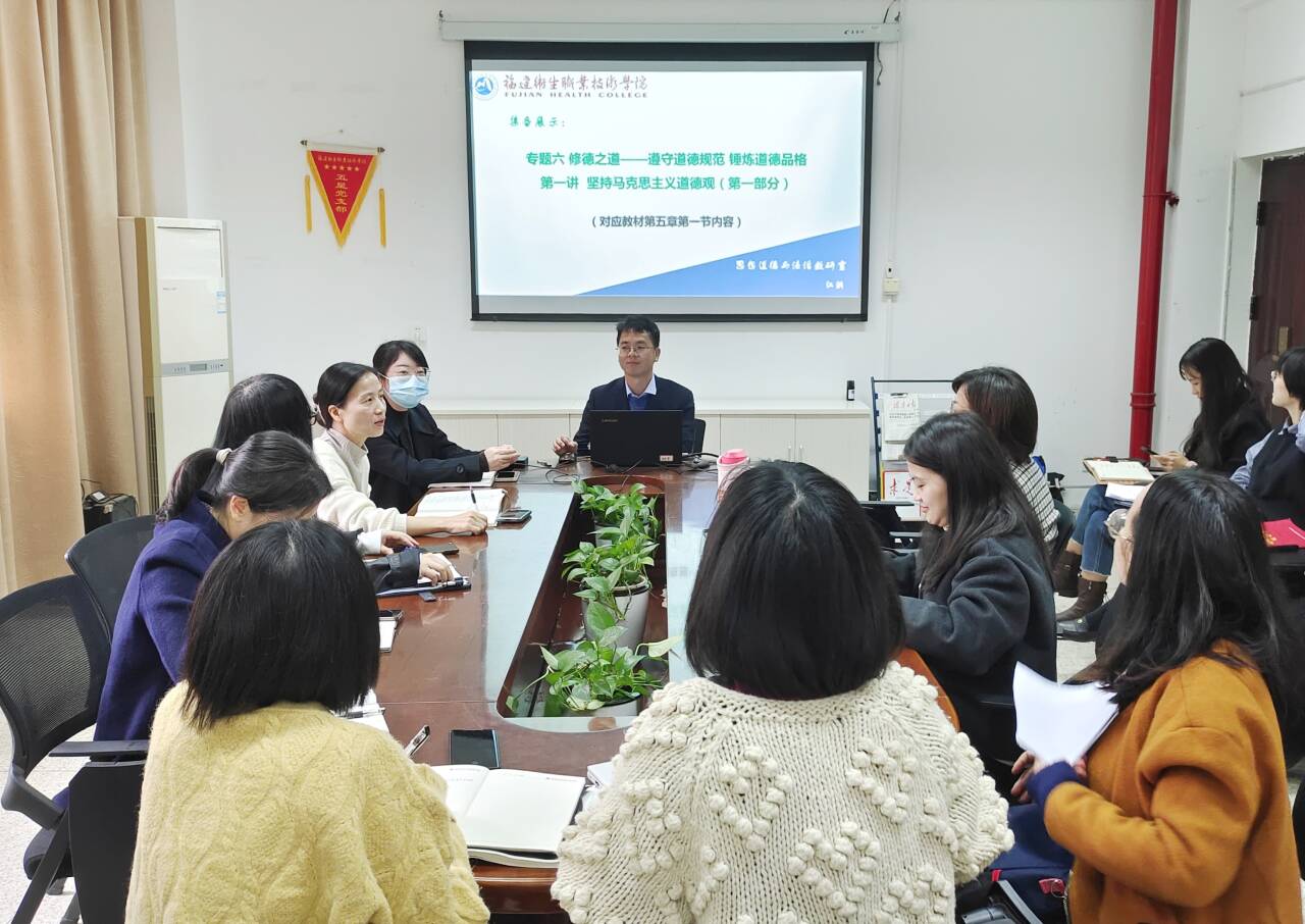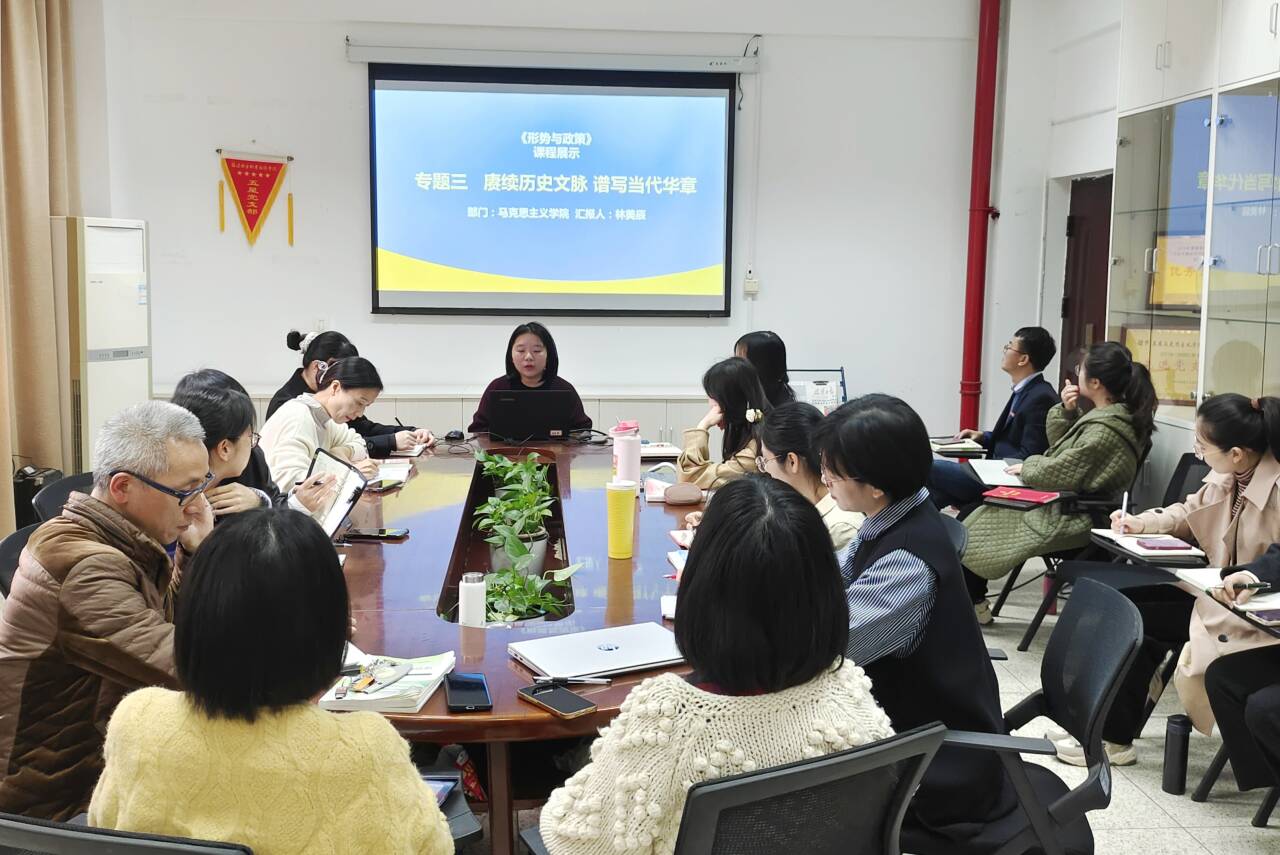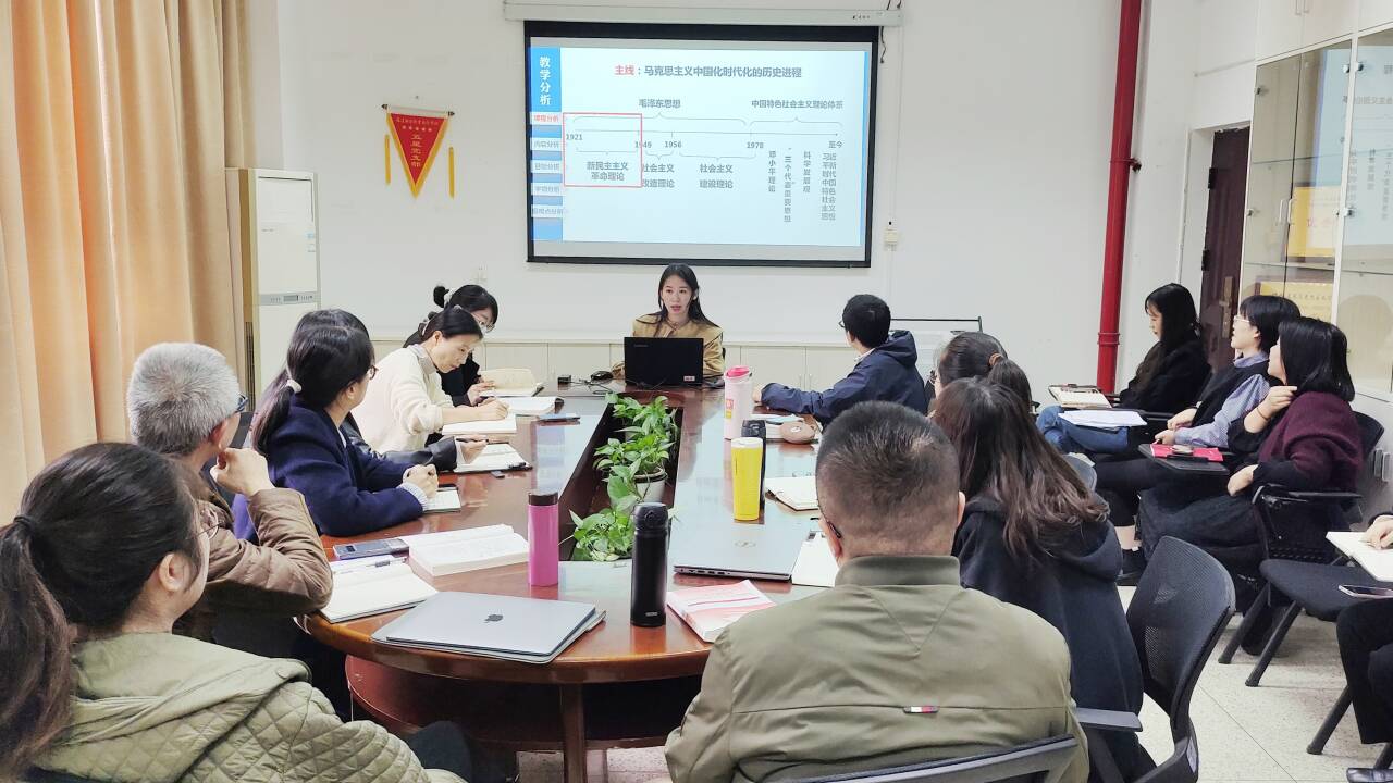 為深入學(xué)習(xí)貫徹習(xí)近平總書記在學(xué)校思想政治理論課教師座談會上的重要講話精神,特別是“大思政課”重要指示精神,切實提高思想政治理論課集體備課水平,提升教師教學(xué)質(zhì)量,2023年12月14日,馬克思主義學(xué)院在行政樓107開展首屆思想政治理論課集體備課示范展示活動,活動由馬克思主義學(xué)院副院長來朋珍主持,馬克思主義學(xué)院全體教師參加。