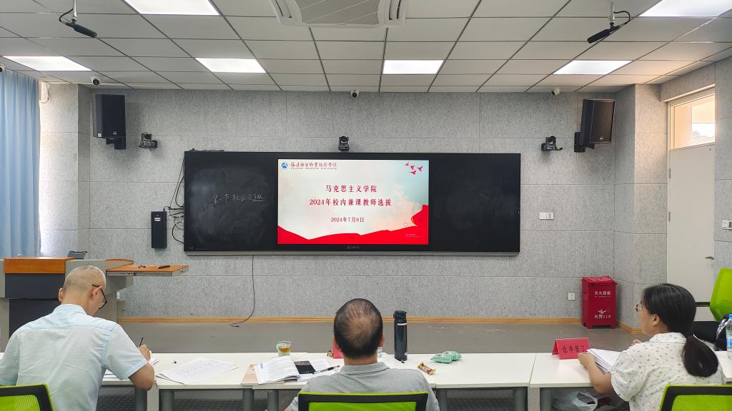 2024年7月6日,馬克思主義學院在篤行樓智慧教室開展2024年校內(nèi)兼課教師選拔活動?;顒友埩藢W校質量管理辦公室主任郭禮堅副教授、質量管理辦公室副主任王珊珊副教授和校督導胡濟林副教授3位專家擔任評委,來自全校各學院、部門的34名教師報名參加。