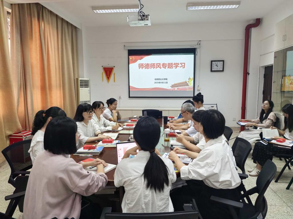 為加強師德師風建設,增強教師的立德樹人責任感與使命感,2025年9月11日,馬克思主義學院在厚德樓106會議室開展師德師風專題學習活動。活動由馬克思主義學院院長熊美蘭主持,馬克思主義學院全體教師出席本次活動。