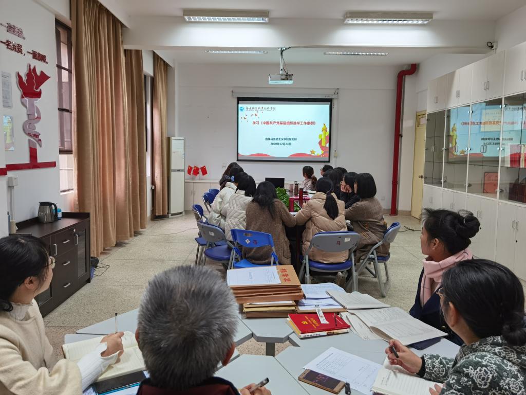 會上,首先由支部副書記來朋珍同志傳達(dá)了馬院黨支部將于近期開展換屆工作的通知。隨后,來副書記帶領(lǐng)大家逐條學(xué)習(xí)《條例》全文內(nèi)容,強(qiáng)化全體支部黨員對《條例》精神的進(jìn)一步理解。