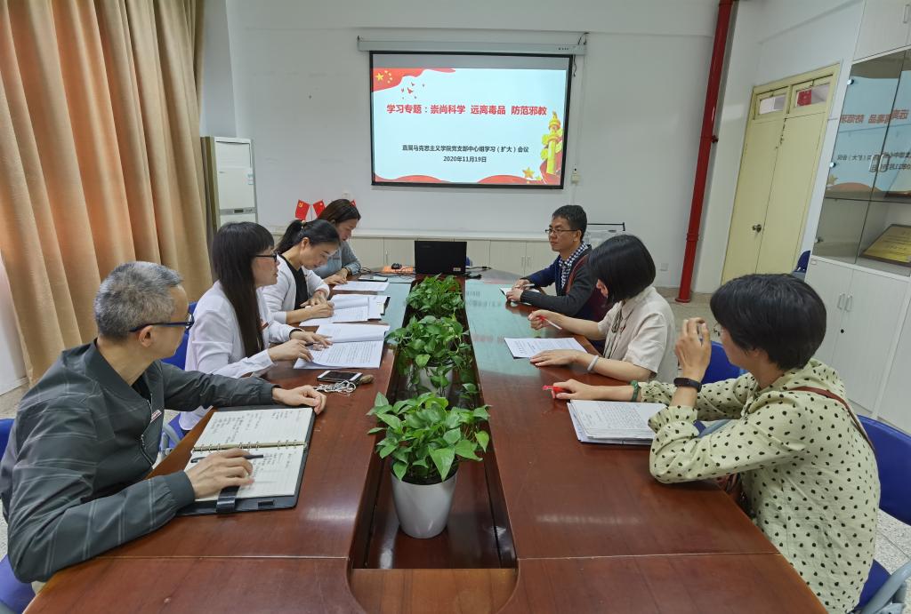 11月19日下午,直屬馬克思主義學(xué)院黨支部在行政樓107會議室召開中心組學(xué)習(xí)(擴(kuò)大)會議,開展“崇尚科學(xué) 遠(yuǎn)離病毒 防范邪教”專題學(xué)習(xí)。本次會議由直屬馬克思主義學(xué)院黨支部書記熊美蘭主持,支部全體委員及各教研室主任參加了會議。