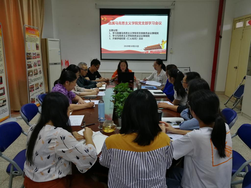 10月15日下午,直屬馬克思主義學(xué)院黨支部在行政樓107馬院會(huì)議室組織開展學(xué)習(xí)會(huì)議。會(huì)議由支部組織委員兼紀(jì)檢委員楊盈同志主持,支部教師黨員參加了會(huì)議。