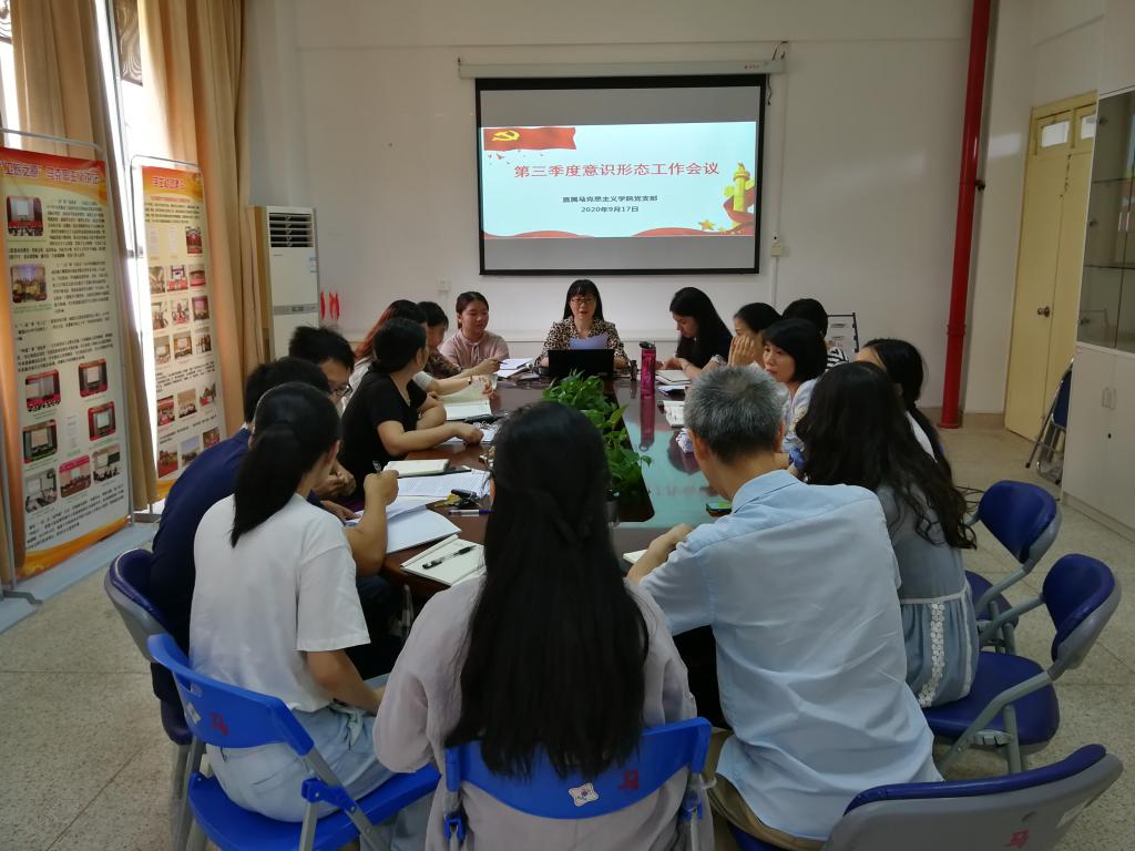 2020年9月17日上午,直屬馬克思學(xué)院黨支部在行政樓107馬院會(huì)議室召開2020年第三季度意識(shí)形態(tài)工作會(huì)議。會(huì)議由直屬馬克思學(xué)院黨支部書記熊美蘭主持,直屬馬克思學(xué)院黨支部全體黨員參加了會(huì)議。