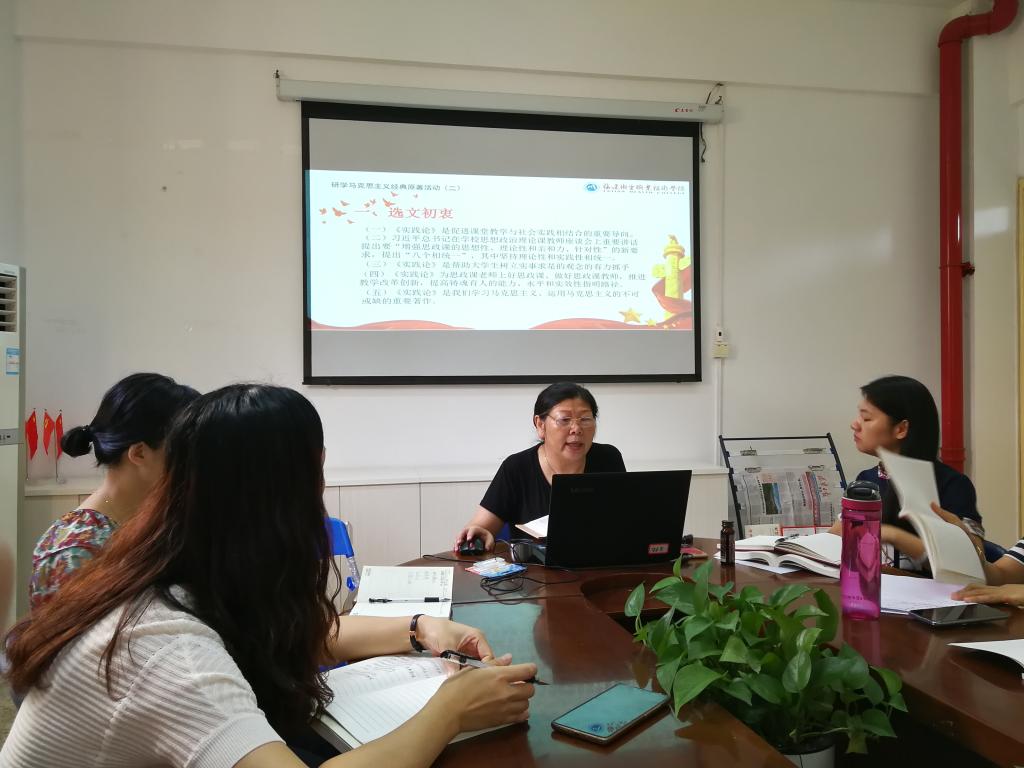 隨后,開展了研學(xué)馬克思主義經(jīng)典原著活動(dòng)。本期的研學(xué)馬克思主義經(jīng)典原著活動(dòng)由魏立娜教授主講,她圍繞毛澤東的《實(shí)踐論》,結(jié)合實(shí)際工作,和老師們分享了學(xué)習(xí)體會(huì)。