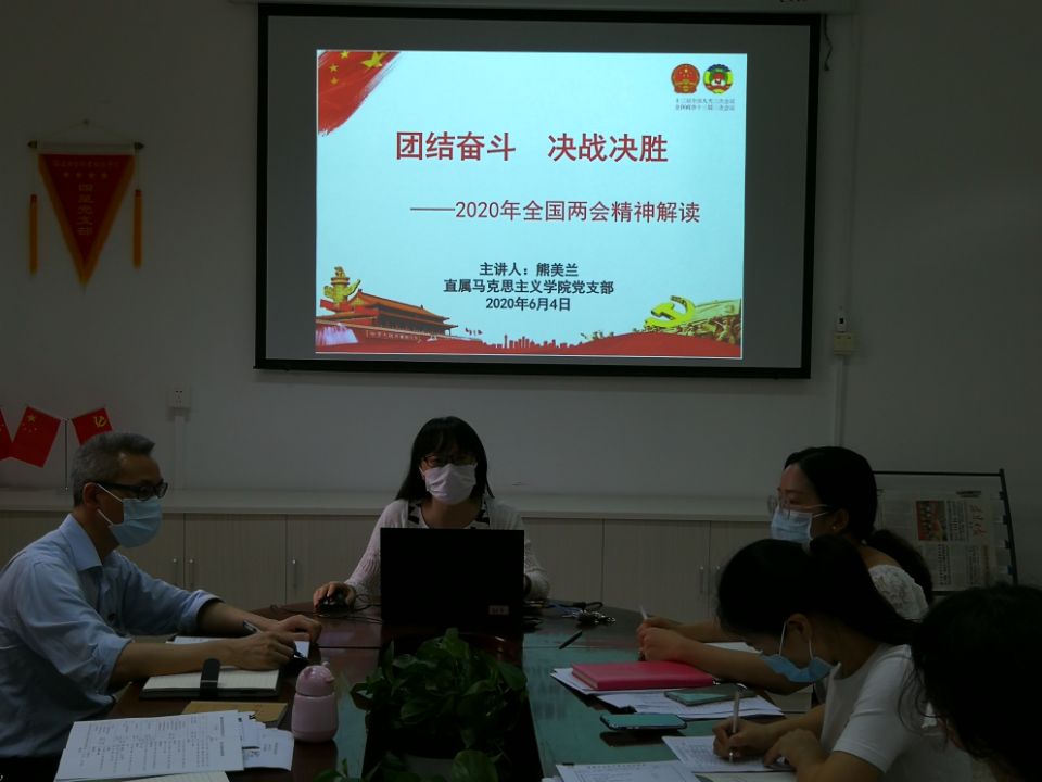為深入學(xué)習2020年全國兩會精神,促進兩會精神貫徹到實際工作中,2020年6月4日,直屬馬克思主義學(xué)院黨支部在行政樓107開展了2020年全國兩會精神專題學(xué)習活動,全體黨員教師參加了活動。