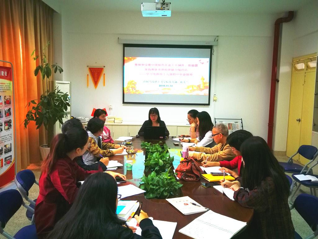 為慶祝新中國(guó)成立70周年,深入學(xué)習(xí)貫徹黨的十九屆四中全會(huì)精神,扎實(shí)推進(jìn)“不忘初心、牢記使命”主題教育落實(shí)落深,2019年11月14日上午,直屬馬克思主義學(xué)院黨支部展開主題黨日活動(dòng),組織全體黨員學(xué)習(xí)黨的十九屆四中全會(huì)精神并參觀“偉大歷程輝煌成就——慶祝中華人民共和國(guó)成立70周年大型成就展”網(wǎng)上展館。活動(dòng)由直屬馬克思主義學(xué)院黨支部書記熊美蘭主持,黨支部全體黨員參加了此次活動(dòng)。