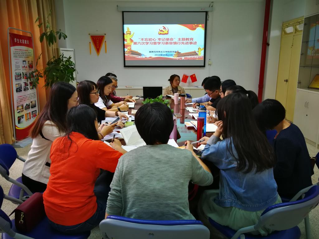 為了更好的“守初心,擔使命,找差距,抓落實”,學(xué)習(xí)落實慕容慎行同志先進事跡,發(fā)揚慕容慎行高尚精神,2019年10月24日上午直屬馬克思主義學(xué)院開展“不忘初心、牢記使命”主題教育第六次專題學(xué)習(xí)暨學(xué)習(xí)慕容慎行先進事跡活動。本次主題教育由直屬馬克思主義學(xué)院黨支部書記熊美蘭主持,馬院全體教師黨員參加。