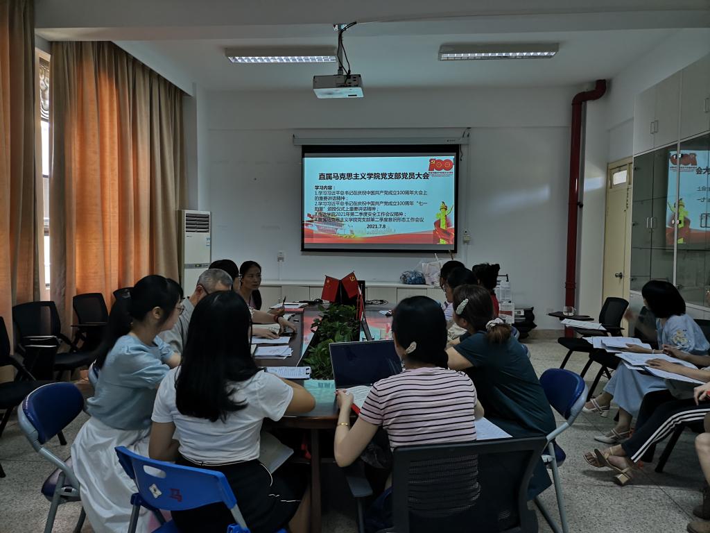 2021年7月8日上午,直屬馬克思主義學(xué)院黨支部在行政樓107會(huì)議室召開(kāi)黨員大會(huì)暨第二季度意識(shí)形態(tài)專題工作會(huì)。會(huì)議由黨支部書記熊美蘭同志主持,黨支部全體黨員同志參加了會(huì)議。