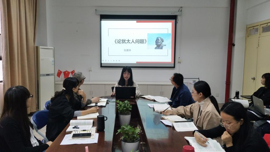 2021年11月4日上午,直屬馬克思主義學院黨支部第一黨小組在會議室107開展經(jīng)典研學分享活動。此次活動由黨支部委員羅蕓主持,張晨琳同志主講,研學內(nèi)容為馬克思的《論猶太人問題》。