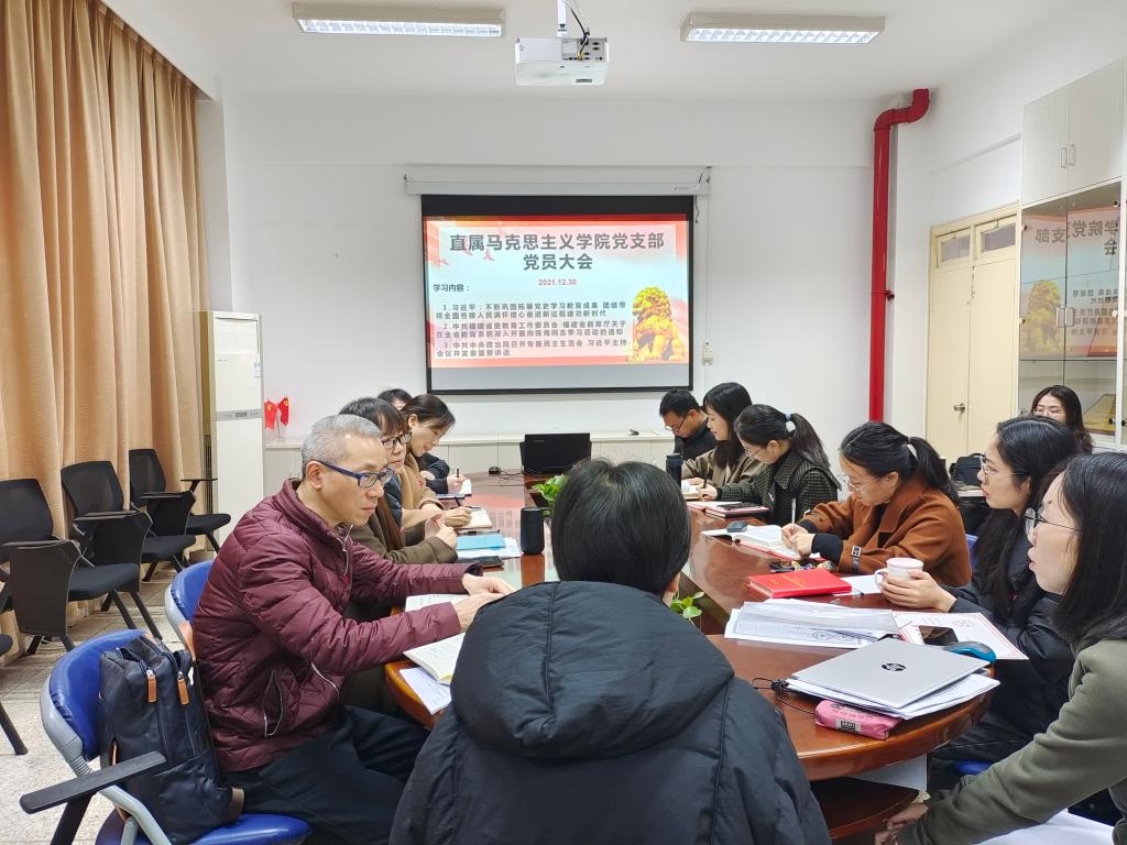 2021年12月30日,直屬馬克思主義學院黨支部在會議室107開展意識形態(tài)專題會議。會議由黨支部副書記來朋珍主持,支部全體黨員參加了會議。