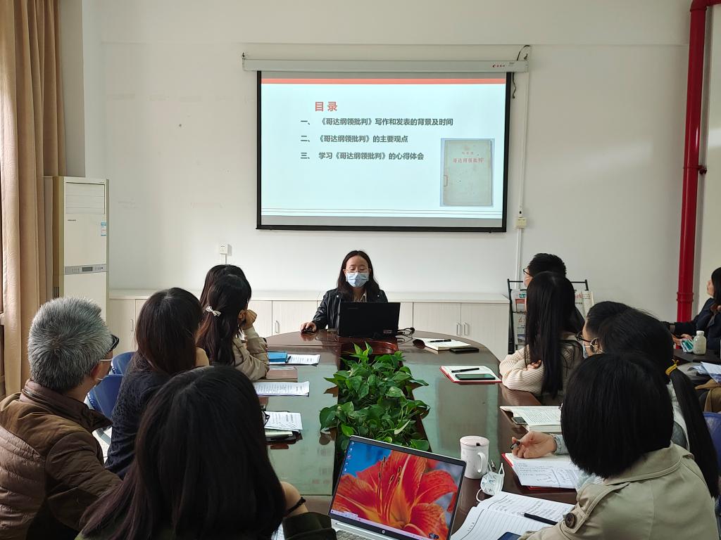 2022年4月21日上午,直屬馬克思主義學(xué)院黨支部第二黨小組在會議室107開展經(jīng)典研學(xué)分享活動。此次活動由黨小組組長來朋珍主持,龍慧同志主講,研學(xué)內(nèi)容為馬克思的《哥達(dá)綱領(lǐng)批判》。