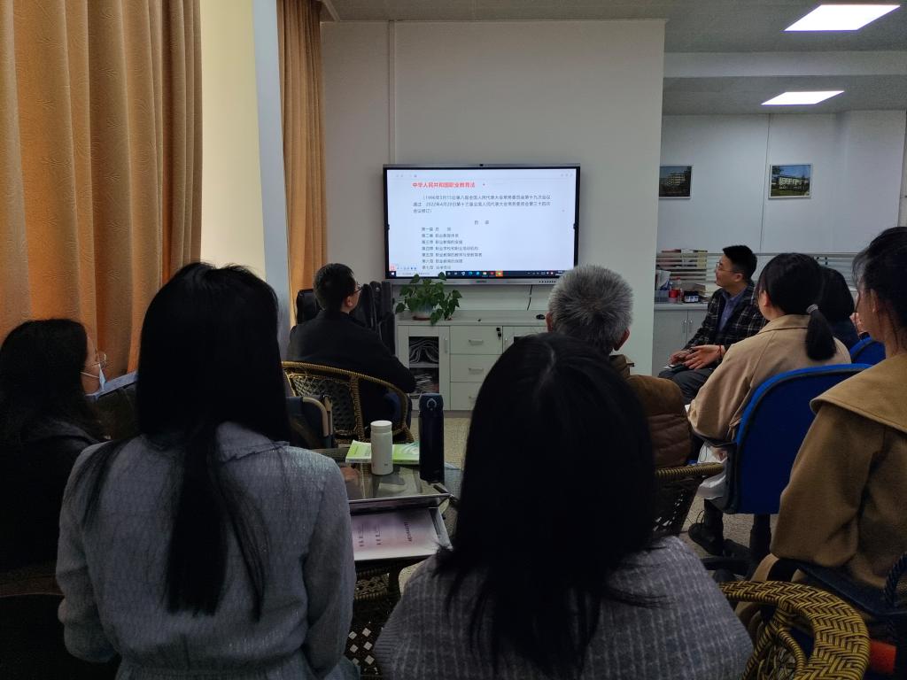 為適應職業(yè)教育發(fā)展面臨的新形勢、新要求,2022年5月5日,直屬馬克思主義學院黨支部(以下簡稱“馬院支部”)在行政樓101開展學習《中華人民共和國職業(yè)教育法》主題黨日活動。