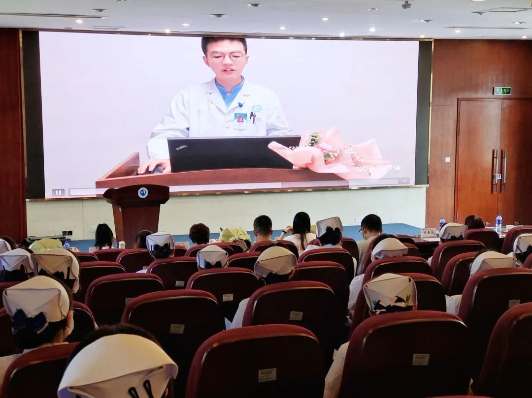 現(xiàn)就職龍巖市第二醫(yī)院的詹仕鑫校友通過云端的方式講述了他作為首批援鄂醫(yī)療隊一員,進駐武漢金銀潭醫(yī)院的故事。他目睹了武漢確診人數(shù)在短時間內(nèi)突破2萬;見證了火神山醫(yī)院在10天內(nèi)拔地而起;親歷了所有黨員面對黨旗宣誓,“隨時準備為黨和人民犧牲一切”“把最危險的工作留給黨員”的莊嚴時刻。他隨即下定決心加入中國共產(chǎn)黨,向黨組織遞交了入黨申請書。2022年,他又再次出征援滬,主動申請在最艱難、感染風險最高的脫間通道崗位,進行對所有出艙隊員的監(jiān)督把控,做方艙里的“最后一道防線”?!吧晔⑹?,何其有幸”,他鼓勵在場青年醫(yī)學生立足崗位從先輩手中接過歷史的接力棒,繼續(xù)奔跑,以實際行動迎接黨的二十大。