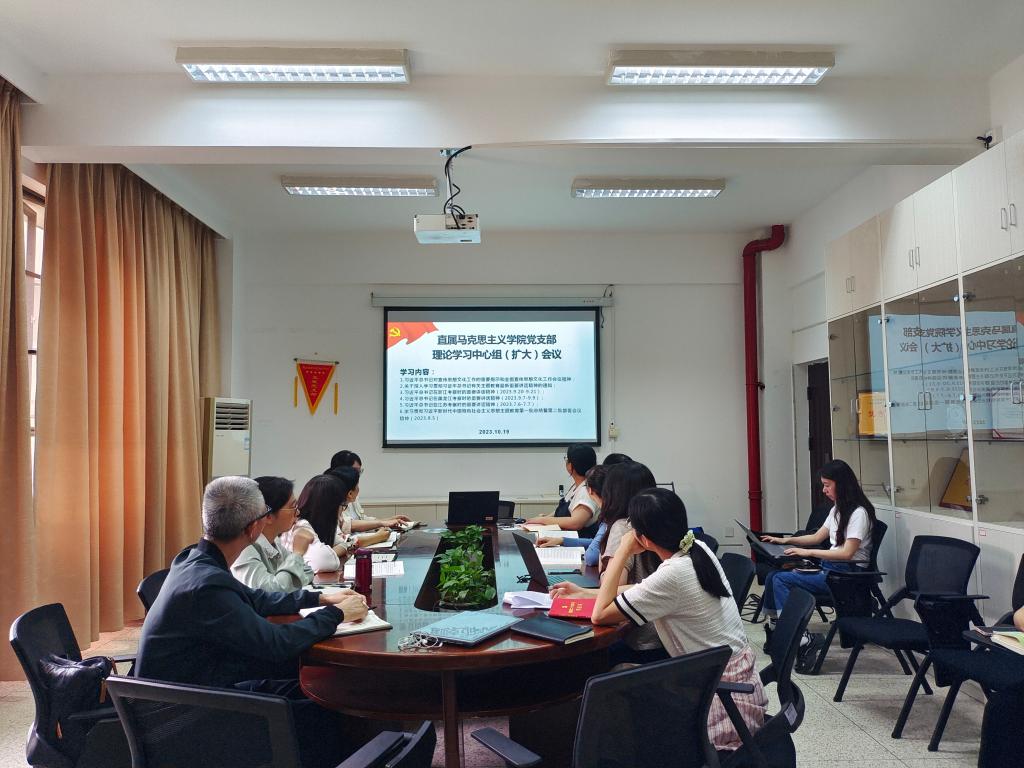 2023年10月19日,直屬馬克思主義學院黨支部在行政樓107開展理論學習中心組(擴大)會議。會議由黨支部書記熊美蘭主持。