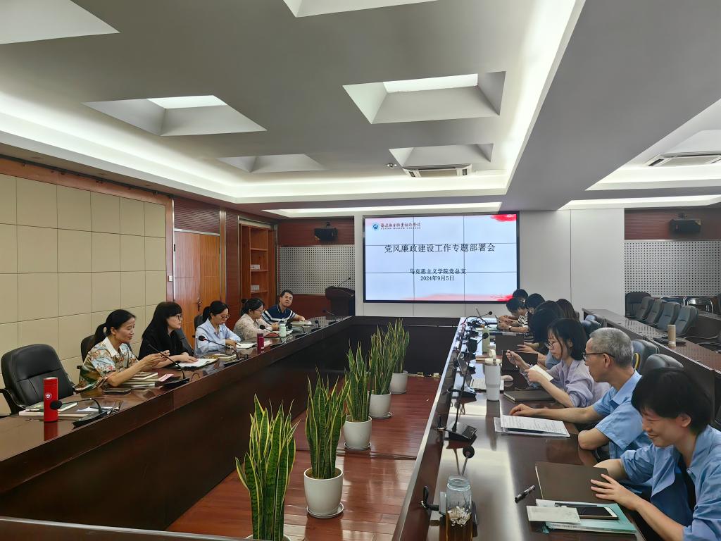 為貫徹落實黨的二十屆三中全會精神,深入學習貫徹習近平總書記關于黨的自我革命的重要思想,9月5日,馬克思主義學院黨總支在厚德樓四樓會議室開展黨風廉政建設工作專題部署會。研究新學期黨風廉政建設工作,并開展警示教育。