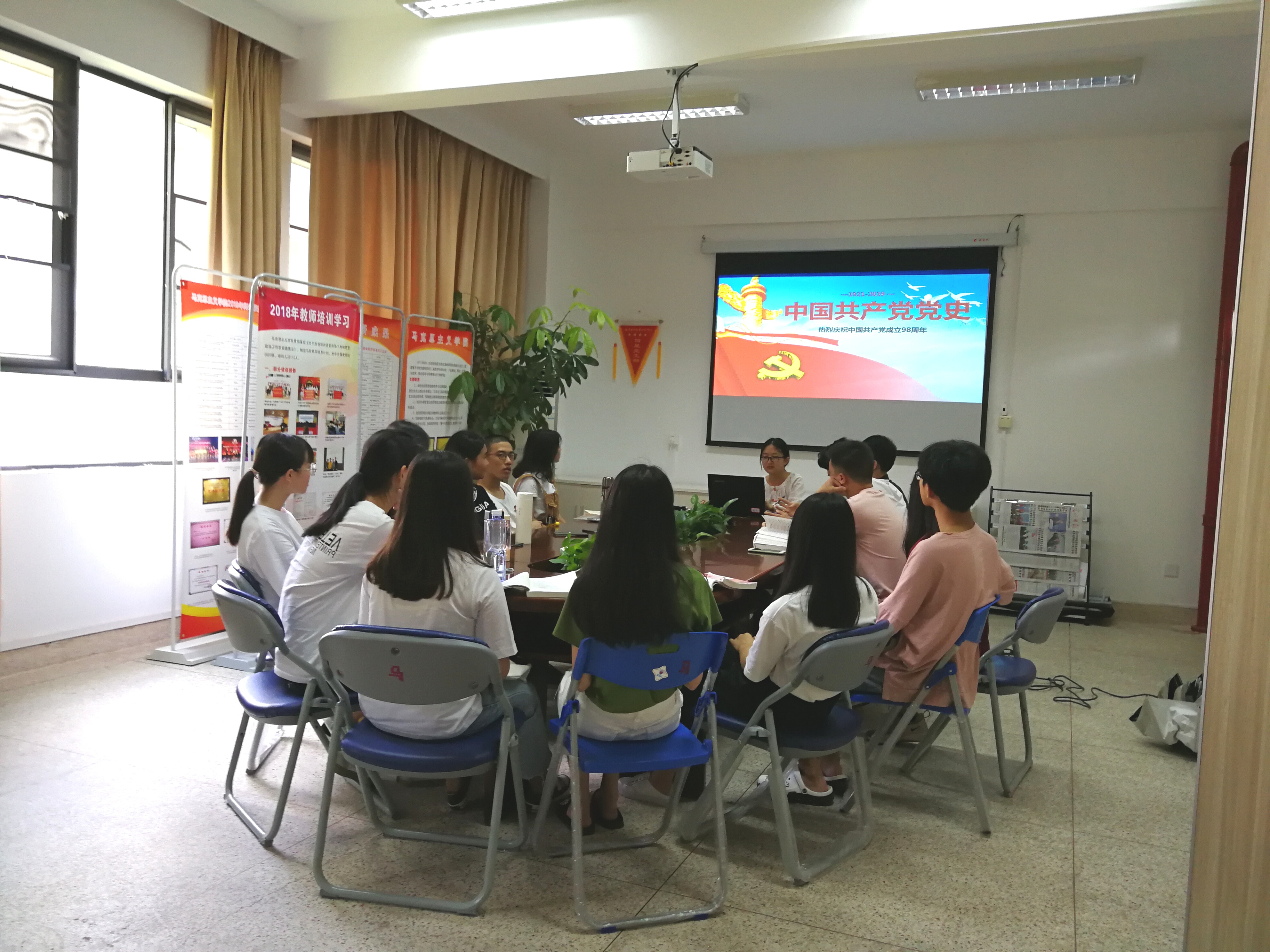 在“七一”建黨節(jié)來臨之際,為慶祝中國共產(chǎn)黨成立98周年,習(xí)近平新時代中國特色社會主義思想讀書社“致遠(yuǎn)隊”于6月14日在行政樓107開展了“重溫中國共產(chǎn)黨98年光輝歷程”的主題宣講活動。宣講活動由江洪老師指導(dǎo),致遠(yuǎn)隊陳蘭妹同學(xué)主講,致遠(yuǎn)隊全體成員參加了活動。