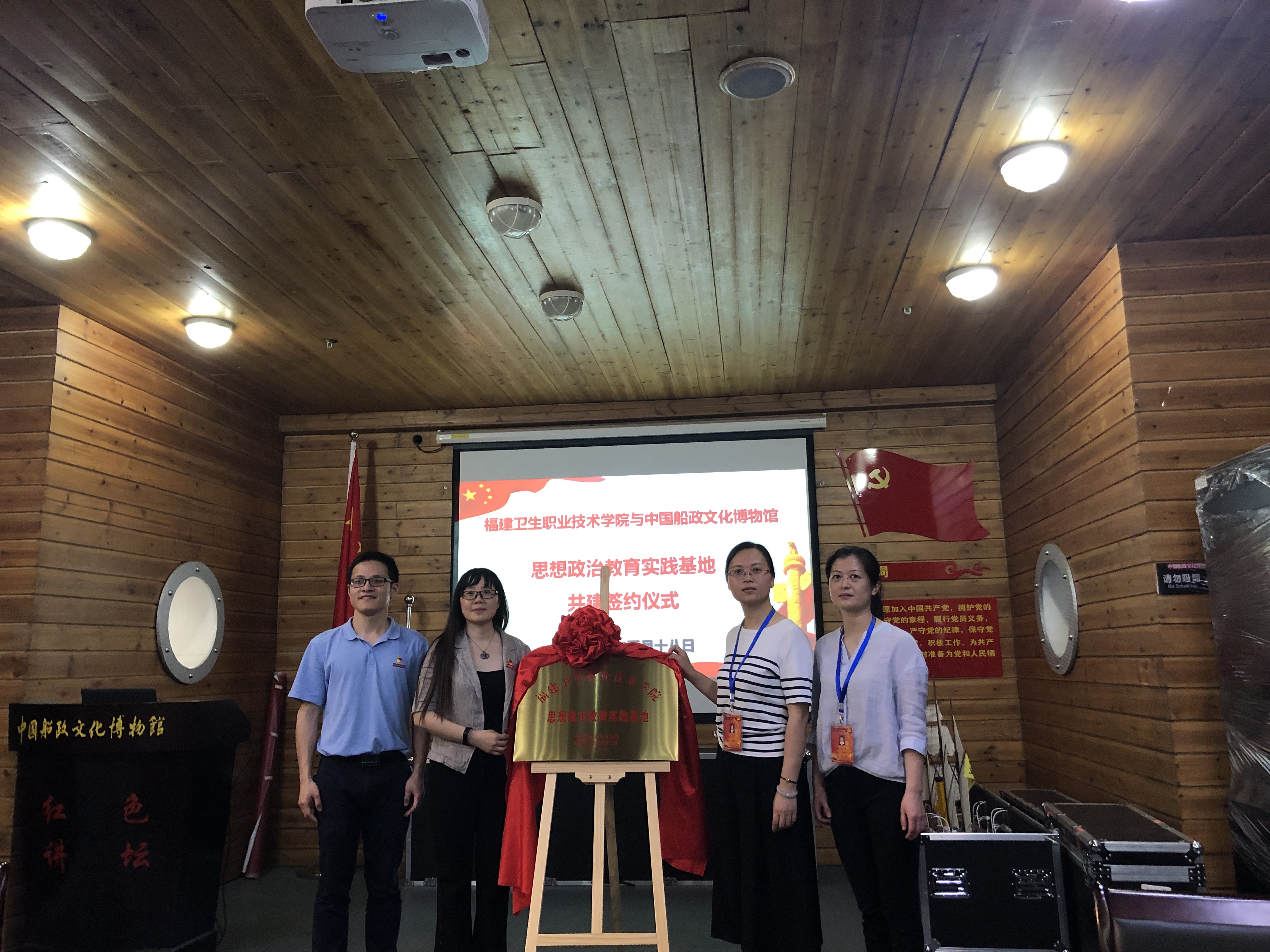 中國船政文化博物館是中國第一個以船政為主題的博物館,是全國人文科學(xué)普及教育基地和福建省高校教育實(shí)踐教學(xué)基地。馬江海戰(zhàn)紀(jì)念館作為全國重點(diǎn)文物保護(hù)單位,是福建省愛國主義教育基地,擁有豐富的教育資源。為了進(jìn)一步創(chuàng)新我校思想政治教育模式,提高實(shí)踐教學(xué)教育質(zhì)量,提升馬克思主義理論研究水平。2019年5月18日,恰逢第43個國際博物館之際,我校與中國船政文化博物館、馬江海戰(zhàn)紀(jì)念館合作共建思想政治教育實(shí)踐基地揭牌儀式在中國船政文化博物館會議室舉行。馬克思主義學(xué)院名譽(yù)院長魏立娜、馬克思主義學(xué)院院長熊美蘭、馬克思主義學(xué)院副院長黃曦,中國船政文化博物館副館長王芳、馬江海戰(zhàn)紀(jì)念館館長王曉芹、福建衛(wèi)生職業(yè)技術(shù)學(xué)院“習(xí)近平新時代中國特色社會主義思想讀書社”實(shí)踐團(tuán)隊學(xué)生出席此次揭牌儀式,揭牌儀式由我校馬克思主義學(xué)院副院長黃曦主持。