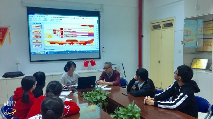 本次專題學(xué)習(xí)主要圍繞新中國成立70周年以及暑期“三下鄉(xiāng)”社會實(shí)踐活動的心得體會來展開。首先由胡濟(jì)林老師以新中國成立70周年為主題進(jìn)行專題學(xué)習(xí),胡老師介紹了國慶的來歷、新中國成立70周年的大事記、國慶大典概況、舉辦國慶大典的重大意義等。胡老師指出,這次國慶大典是在第一個(gè)百年即將到來之際,全黨全軍全國各族人民萬眾一心,朝著全面建成小康社會目標(biāo)奮進(jìn)的一次偉力凝聚;是在實(shí)現(xiàn)中華民族偉大復(fù)興中國夢的征程上,全體中華兒女對共同理想所作的一次豪邁宣示;是在當(dāng)今世界正經(jīng)歷百年未有之大變局的形勢下,中華人民共和國始終巍然屹立于世界東方,并且愈發(fā)蓬勃、愈發(fā)健強(qiáng)的一次盛大亮相。接著由鐘程雅同學(xué)講解新中國成立70周年的歷史和現(xiàn)在的輝煌成就、青春隊(duì)的小隊(duì)長李昱同學(xué)匯報(bào)讀書社的暑期“三下鄉(xiāng)”社會實(shí)踐活動情況和體會。