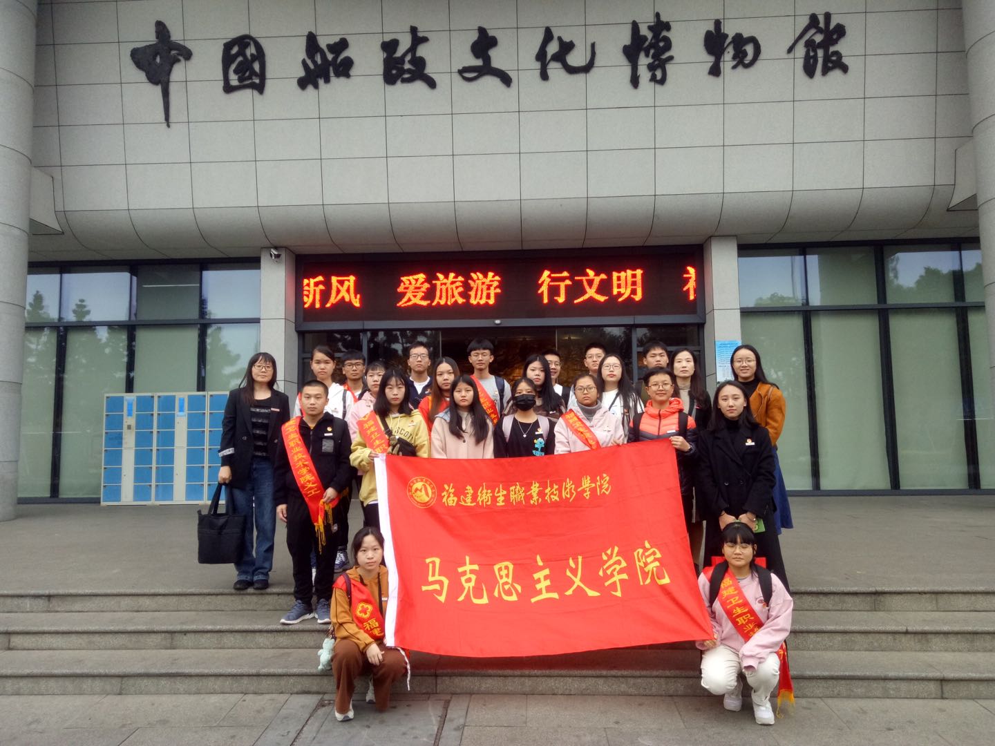 為深入學習《平語近人——習近平總書記用典》,我校習近平新時代中國特色社會主義思想讀書社原夢隊(簡稱“原夢隊”)于2019年11月30日8:30,齊聚位于馬尾區(qū)的中國船政文化博物館,結(jié)合船政文化開展社會考察學習活動。在原夢隊熊美蘭指導老師帶領(lǐng)下,伴著汽車的轟鳴我們開始了今天的行程,沿途的風景邊走邊望,只有對目的地的期待在始終吸引著我們前進的步伐。