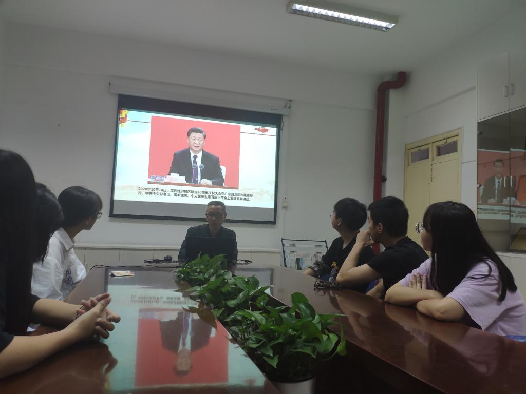 2020年10月15日晚17:10習(xí)近平新時(shí)代中國(guó)特色社會(huì)主義思想青春隊(duì)的同學(xué)們?cè)谛姓?07馬克思主義學(xué)院會(huì)議室開(kāi)展了“學(xué)習(xí)習(xí)近平總書(shū)記《在深圳經(jīng)濟(jì)特區(qū)建立40周年慶祝大會(huì)上的講話》”的主題交流會(huì)。