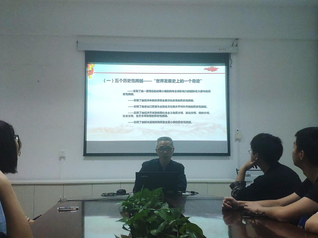 同學(xué)們簽到后,由胡濟(jì)林老師進(jìn)行了《學(xué)習(xí)習(xí)近平總書(shū)記《在深圳經(jīng)濟(jì)特區(qū)建立40周年慶祝大會(huì)上的講話》的專(zhuān)題匯報(bào)。胡老師首先介紹了我國(guó)設(shè)立經(jīng)濟(jì)特區(qū)的過(guò)程,接著回顧了習(xí)近平總書(shū)記的三次深圳之行,最后重點(diǎn)解讀習(xí)近平總書(shū)記《在深圳經(jīng)濟(jì)特區(qū)建立40周年慶祝大會(huì)上的講話》,主要內(nèi)容包括習(xí)近平總書(shū)記用五個(gè)“歷史性跨越”來(lái)概括深圳奇跡,總結(jié)了經(jīng)濟(jì)特區(qū)40年改革開(kāi)放、創(chuàng)新發(fā)展積累的十條寶貴經(jīng)驗(yàn),對(duì)新時(shí)代經(jīng)濟(jì)特區(qū)建設(shè)作出六方面部署等。胡老師指出,深圳是改革開(kāi)放后黨和人民一手締造的嶄新城市,是中國(guó)特色社會(huì)主義在一張白紙上的精彩演繹,充分彰顯中國(guó)特色社會(huì)主義制度的優(yōu)越性,我們要認(rèn)真領(lǐng)會(huì)習(xí)近平總書(shū)記的重要講話精神,學(xué)習(xí)深圳特區(qū)“闖”的精神、“創(chuàng)”的勁頭、“干”的作風(fēng),并轉(zhuǎn)化為學(xué)習(xí)上的強(qiáng)大動(dòng)力。胡老師報(bào)告結(jié)束后,同學(xué)們分享了自己的學(xué)習(xí)心得。