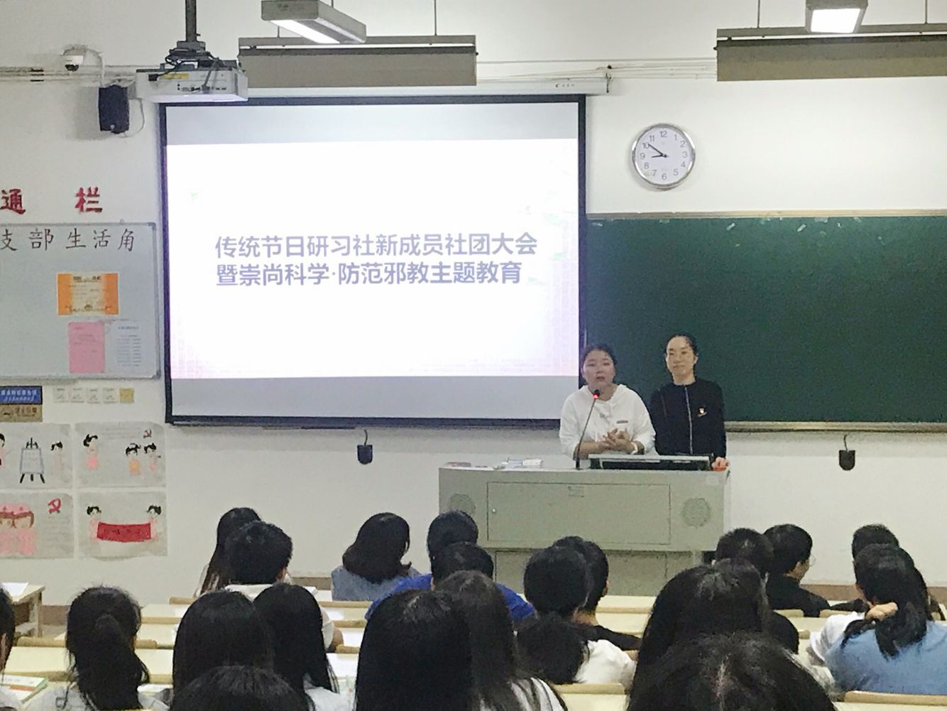 2020年11月19日晚,我校傳統(tǒng)節(jié)日研習(xí)社在教學(xué)樓115教室召開了傳統(tǒng)節(jié)日研習(xí)社新成員社團大會暨“崇尚科學(xué) 遠(yuǎn)離病毒 防范邪教”宣傳教育大會。