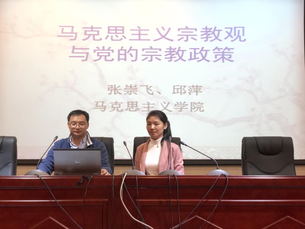 為強(qiáng)化高校意識(shí)形態(tài)陣地建設(shè),幫助青年大學(xué)生樹(shù)立正確的宗教觀,扣好人生第一??圩?,11月23日晚,張崇飛、邱萍老師在實(shí)訓(xùn)樓四樓報(bào)告廳開(kāi)展關(guān)于馬克思主義宗教觀和黨的宗教政策,崇尚科學(xué)、反對(duì)邪教的講座,八一學(xué)社社員參加了培訓(xùn)。