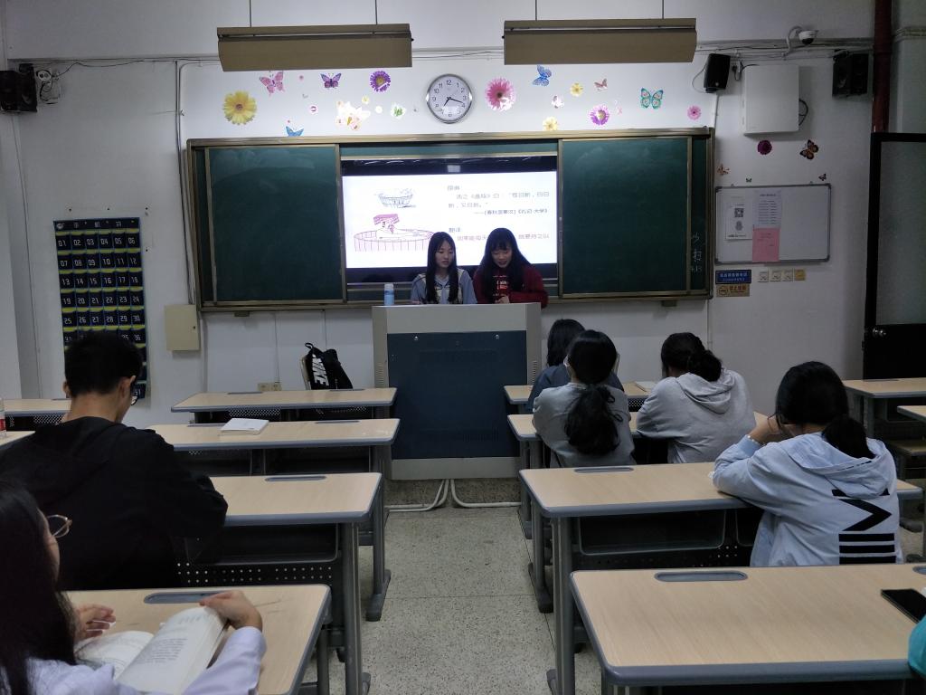 陳雨婷和林超婷這組同學(xué)匯報(bào)交流了“茍日新,日日新,又日新”這一篇。她們指出,習(xí)近平總書(shū)記曾在與青年代表座談、全國(guó)政協(xié)新年茶話(huà)會(huì)、布魯日歐洲學(xué)院演講、院士大會(huì)等多個(gè)場(chǎng)合引用了這句話(huà),突出強(qiáng)調(diào)了創(chuàng)新的重要性,我們作為當(dāng)代大學(xué)生,更是要有創(chuàng)新的觀念,掌握創(chuàng)新的方法,不斷充實(shí)更新知識(shí),為以后走上工作崗位,更好地服務(wù)于祖國(guó)和人民,做好充分的準(zhǔn)備。