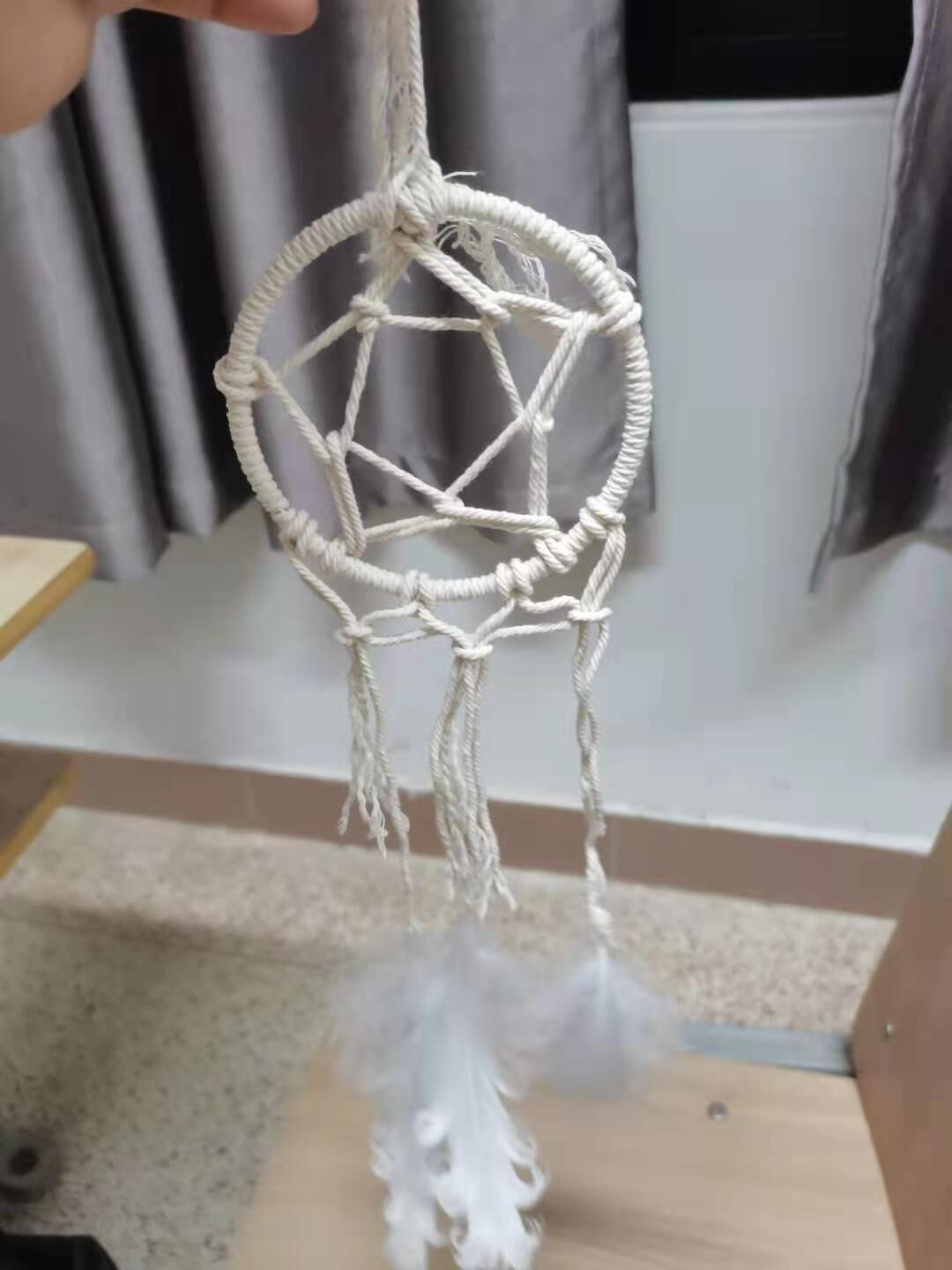 2021年6月2號(hào)DIY社團(tuán)在教室106展開“手工織夢(mèng),編繪美好生活”社團(tuán)主題活動(dòng)。活動(dòng)由社團(tuán)成員高凌琳同學(xué)組織講解,講解如何再利用生活舊物創(chuàng)造新的物品,今日的主題是通過手工制作,繪編自己想象的物品。同學(xué)們激情高漲,相互探討,用簡單的羽毛、繩子、鐵圈、膠水就編織出一幅幅唯美的作品。