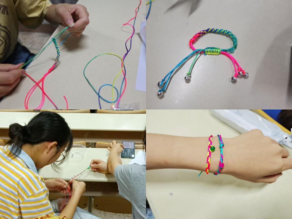 一番激烈的吹龍舟比賽結(jié)束后,成員們發(fā)揮聰明才智,用她們靈巧的雙手編織五彩繩。由社團(tuán)干事組成的評(píng)委團(tuán)為大家勞動(dòng)所編織的五彩繩進(jìn)行評(píng)分,并逐一為獲獎(jiǎng)的選手頒獎(jiǎng),分發(fā)獎(jiǎng)品。