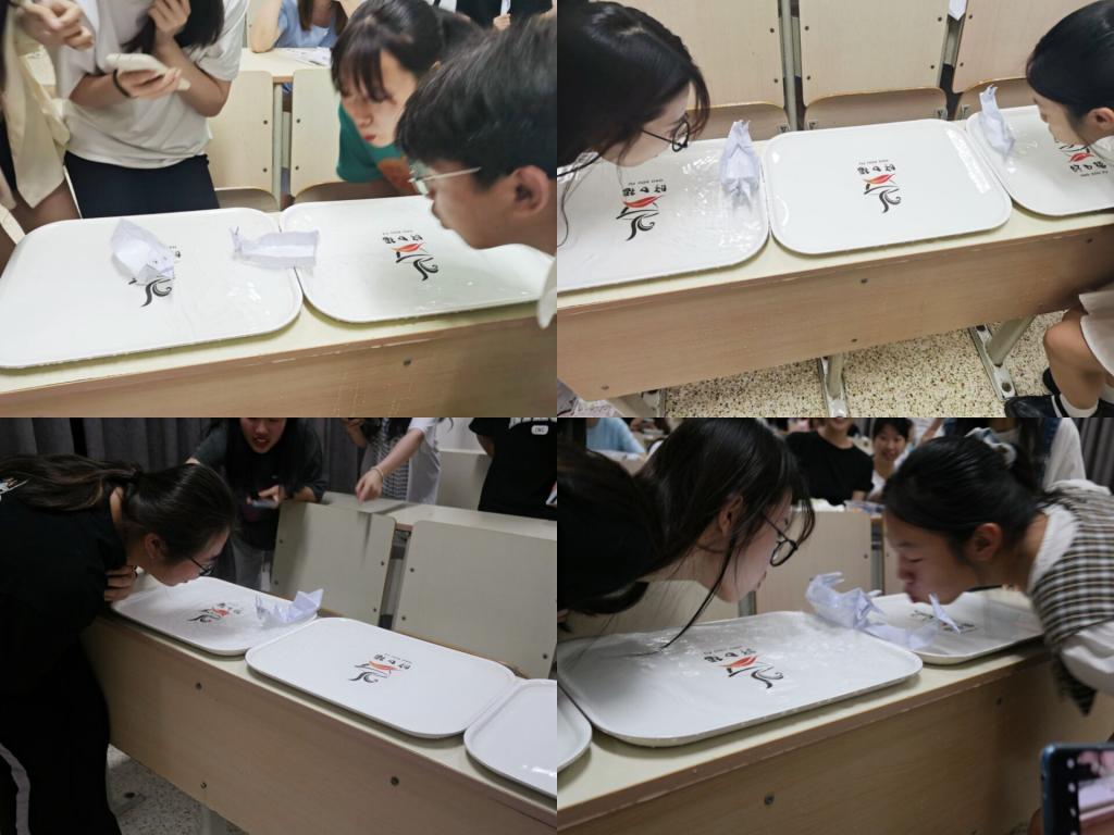 活動(dòng)開(kāi)始,社長(zhǎng)鐘藝芳首先對(duì)本次活動(dòng)開(kāi)展情況、端午節(jié)的相關(guān)知識(shí)及本次活動(dòng)的游戲規(guī)則進(jìn)行了介紹。成員們以小組為單位紛紛開(kāi)始發(fā)揮創(chuàng)意折龍舟。緊接著,現(xiàn)場(chǎng)開(kāi)展了大家期待已久的吹龍舟比賽。成員們踴躍參與,氣氛熱烈。