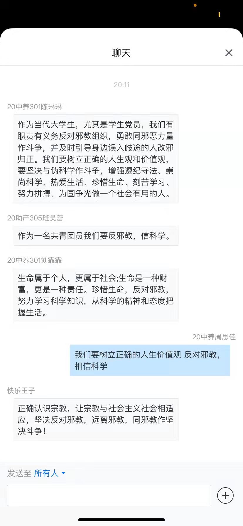 進(jìn)入騰訊會議后,胡濟(jì)林老師作了“樹立馬克思主義宗教觀”專題報告。他通過從宗教的本質(zhì)、馬克思主義政黨對待宗教的態(tài)度和解讀我國的宗教政策三方面,向同學(xué)們生動闡述了宗教的基本常識、我國宗教信仰自由政策,邪教是反人類、反社會、反科學(xué)、反政府的非法組織,是國家嚴(yán)厲打擊的對象。在學(xué)習(xí)過程中,他嚴(yán)肅地告訴同學(xué)們,共產(chǎn)黨員不能信仰宗教,這是由黨的組織紀(jì)律性和先進(jìn)性所決定的,作為一名共青團(tuán)員,也要努力用這個標(biāo)準(zhǔn)來約束自己。