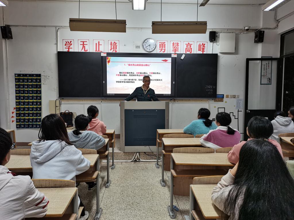 “綠水青山就是金山銀山”“要像保護(hù)眼睛一樣保護(hù)生態(tài)環(huán)境”“良好生態(tài)環(huán)境是最普惠的民生福祉”“生態(tài)環(huán)境保護(hù)是功在當(dāng)代利在千秋的事業(yè)”等,習(xí)近平總書記的精辟論述給同學(xué)們留下深刻的印象。在胡濟(jì)林的報(bào)告結(jié)束后,同學(xué)們進(jìn)行本次學(xué)習(xí)的交流與心得分享,同學(xué)們表示要加強(qiáng)生態(tài)文明宣傳教育,推動(dòng)全民共同實(shí)施生態(tài)文明建設(shè),把生態(tài)文明擺在首要地位,同時(shí)也要在日常學(xué)習(xí)生活中貫徹尊重自然、保護(hù)自然、順應(yīng)自然的生態(tài)理念。胡濟(jì)林號(hào)召同學(xué)們自覺行動(dòng)起來,更加珍愛自然,為保護(hù)生態(tài)環(huán)境作出我們這代人的努力。