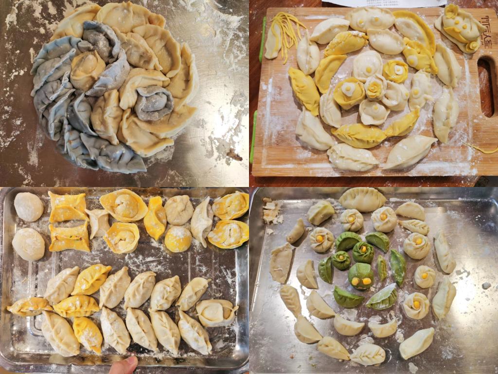 競答比賽之后,現(xiàn)場便開展了大家期待已久的包餃子做湯圓環(huán)節(jié)。在活動(dòng)過程中,顏冰鳳和林美辰與同學(xué)們圍在一起包餃子,同學(xué)們分組制作了不同樣式的餃子和湯圓,擺出了各式花樣,并說出了不同的花樣擺盤的寓意。由社團(tuán)指導(dǎo)老師和同學(xué)組成的評委團(tuán)分別評選出全場“最佳擺盤組”和“最佳寓意組”。